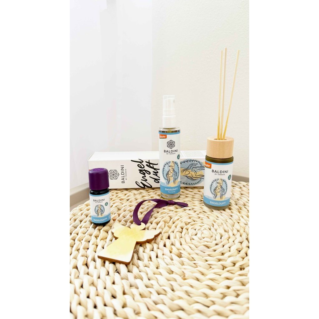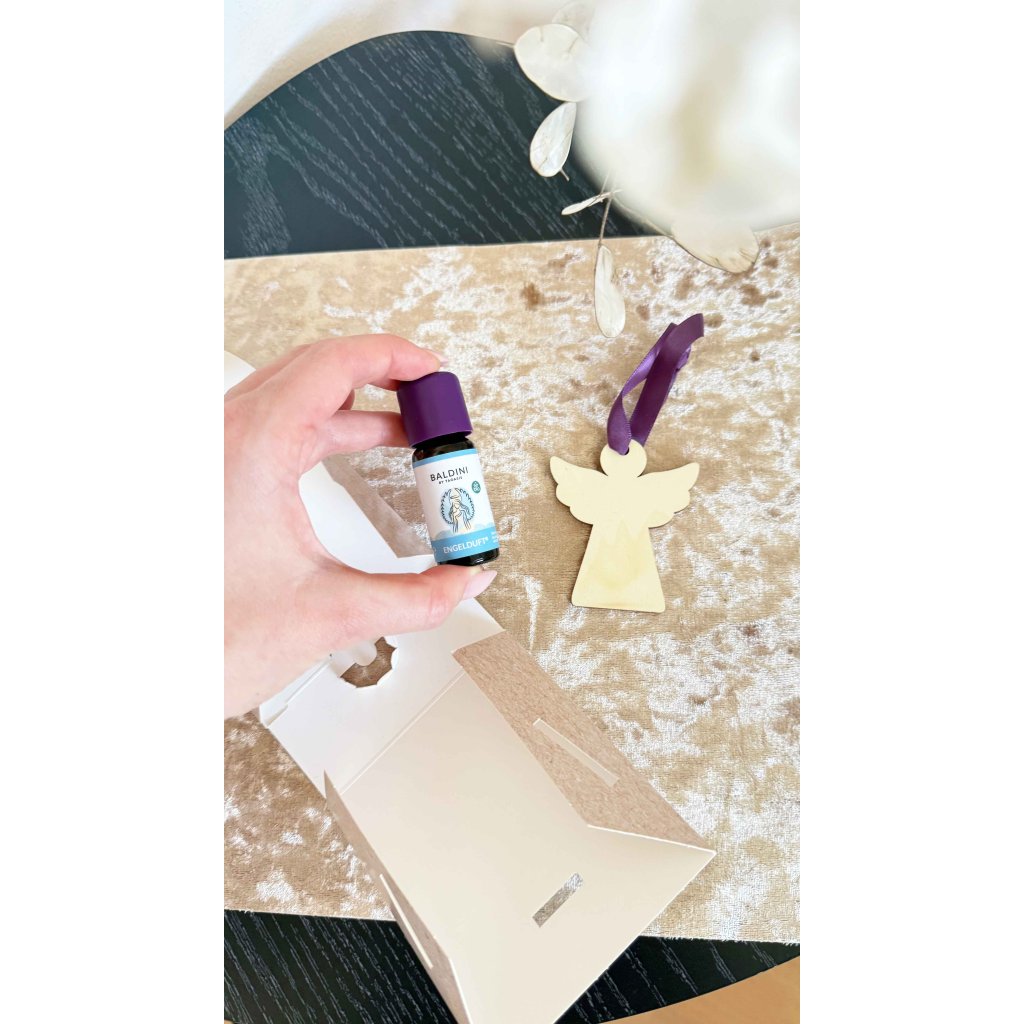 TAOASIS Baldini Aroma mini set Angel Scent BIO přináší do vašeho prostoru neobyčejně příjemnou vůni, která kombinuje svěží limetku, šťavnatý grep a hřejivou tonku. Tato pečlivě ručně balená směs obsahuje pouze čisté, organické éterické oleje a díky dřevěné visačce ve tvaru anděla je její použití snadné i stylové. Stačí několik kapek na dekorativní přívěsek a prostor se rázem naplní harmonizující, euforizující atmosférou pro radostné a klidné chvíle. Krásný dárek pro každého, kdo ocení čistou přírodu a originální nápady.