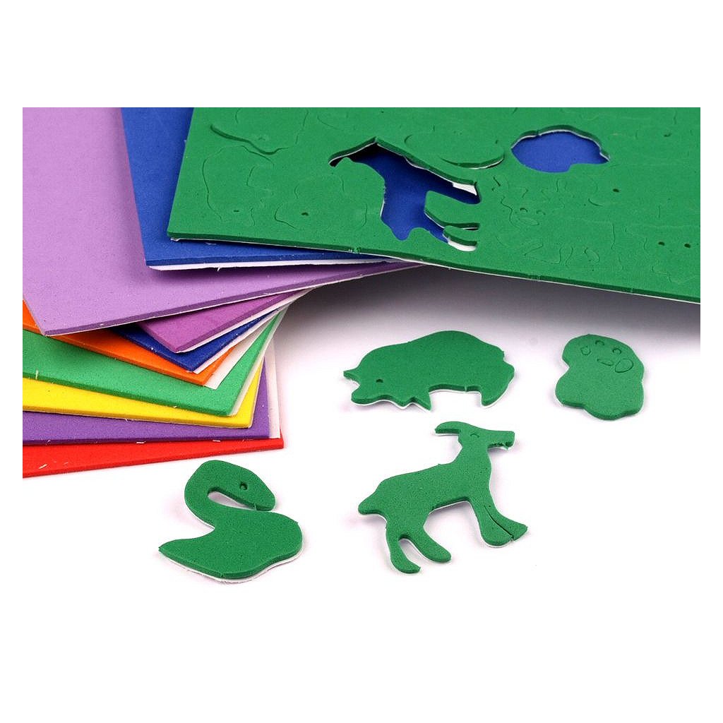 Guma Moosgummi je dodávaná v náhodném mixu. Fotografie je pouze ilustrační. V jednotlivých baleních mohou být různé barvy gumy. Některá balení mají na jednom archu gumy vyseknutý vzor zvířátek, která můžete vyloupnout a nalepit.
