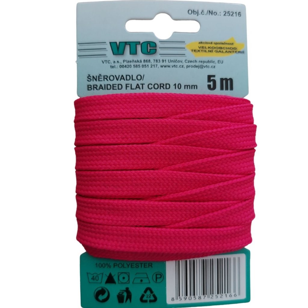 Plochá šňůrka 5 m v cyklámové barvě o šířce 10 mm