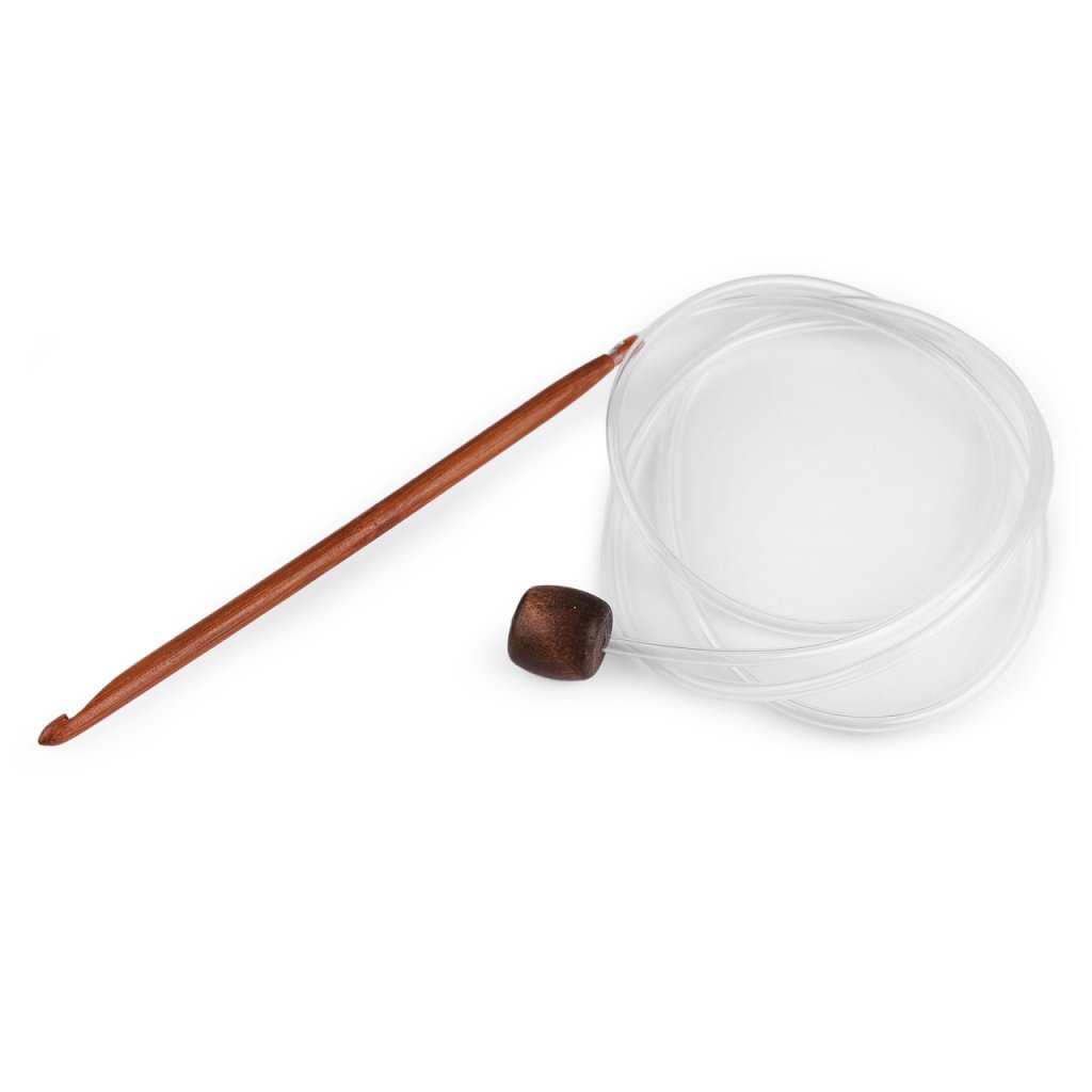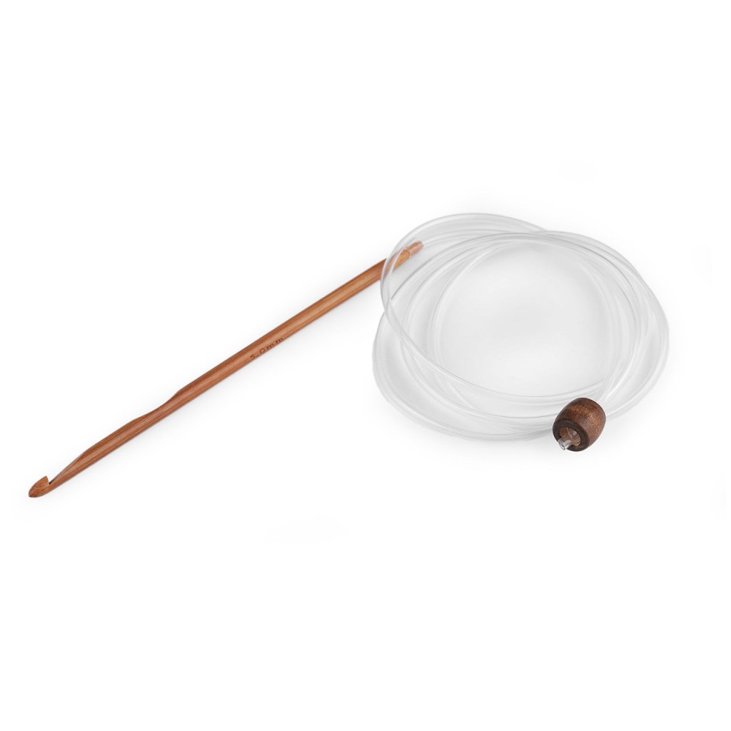 Bambusový háček s bužírkou je určený na tuniské háčkování, které je silnější a méně pružnější než háčkování klasické. Díky těmto vlastnostem je tato technika vhodná na háčkování dek a zimních úpletů.