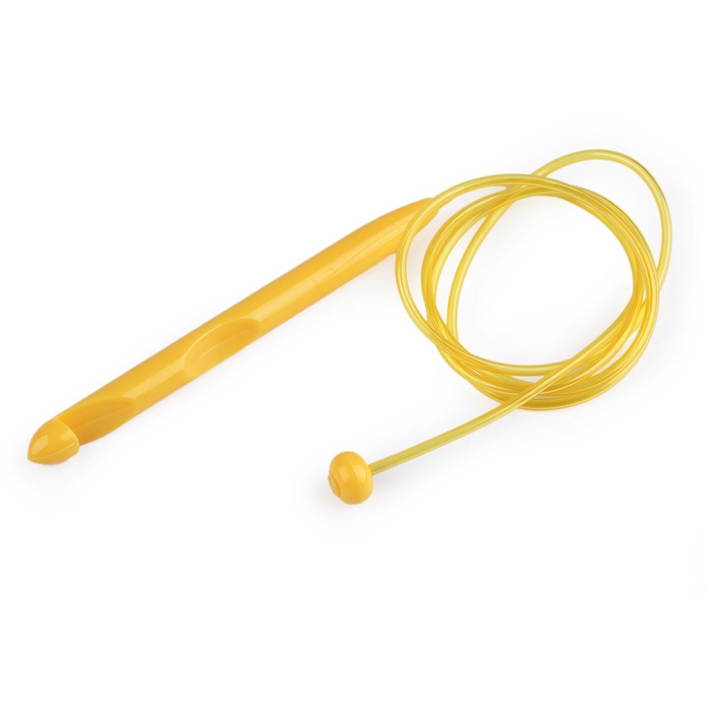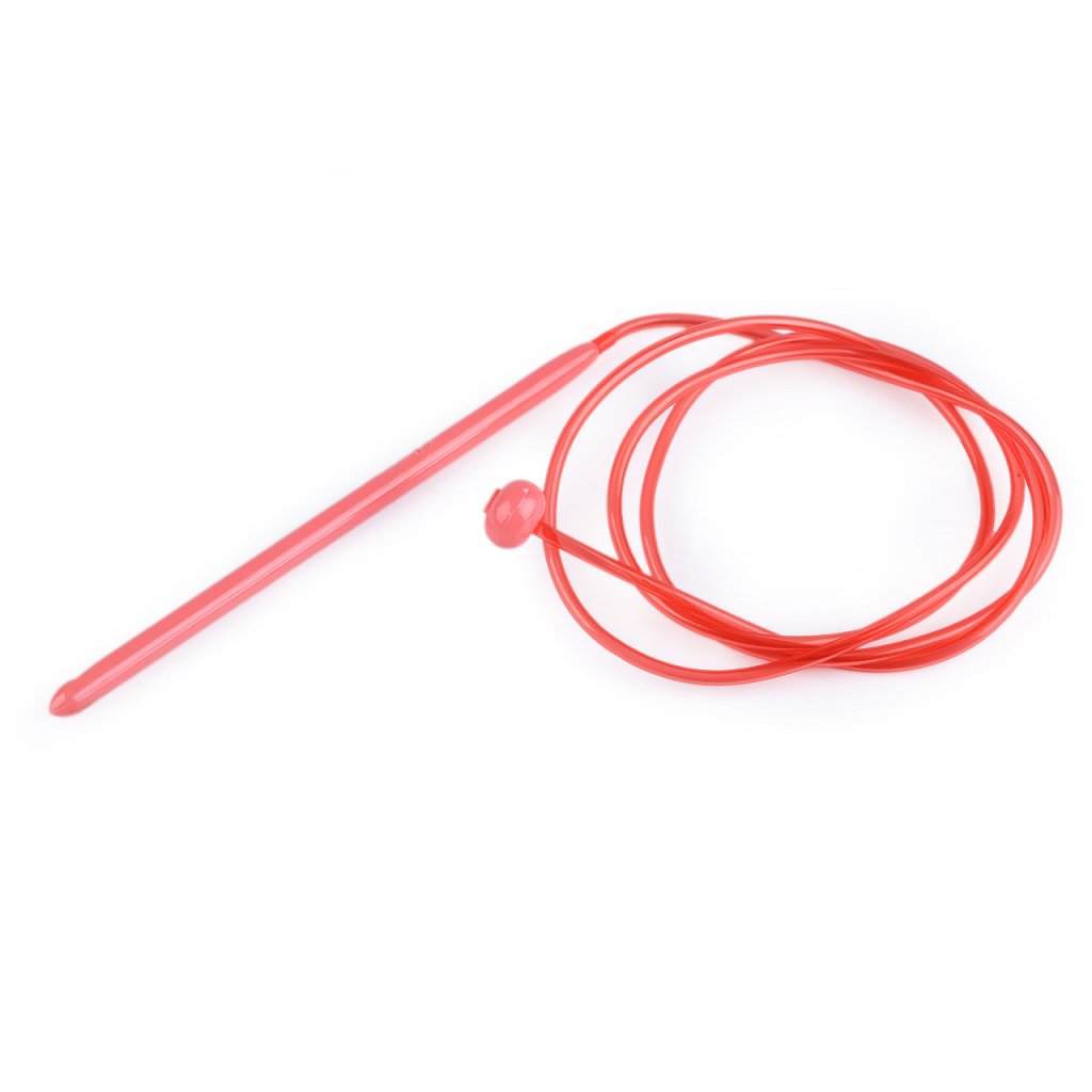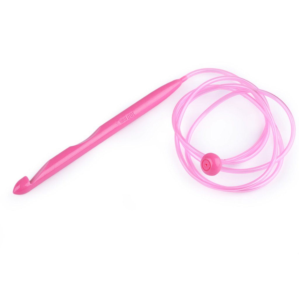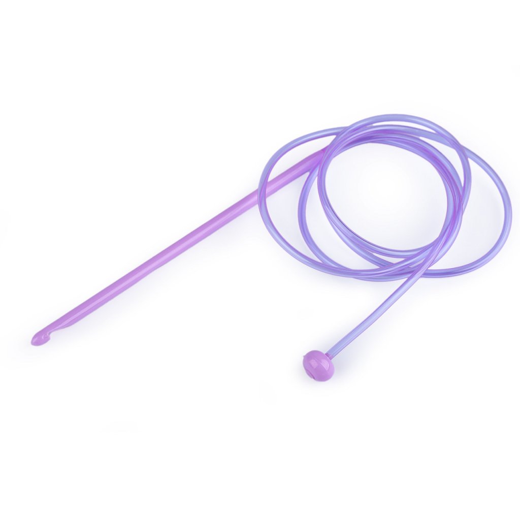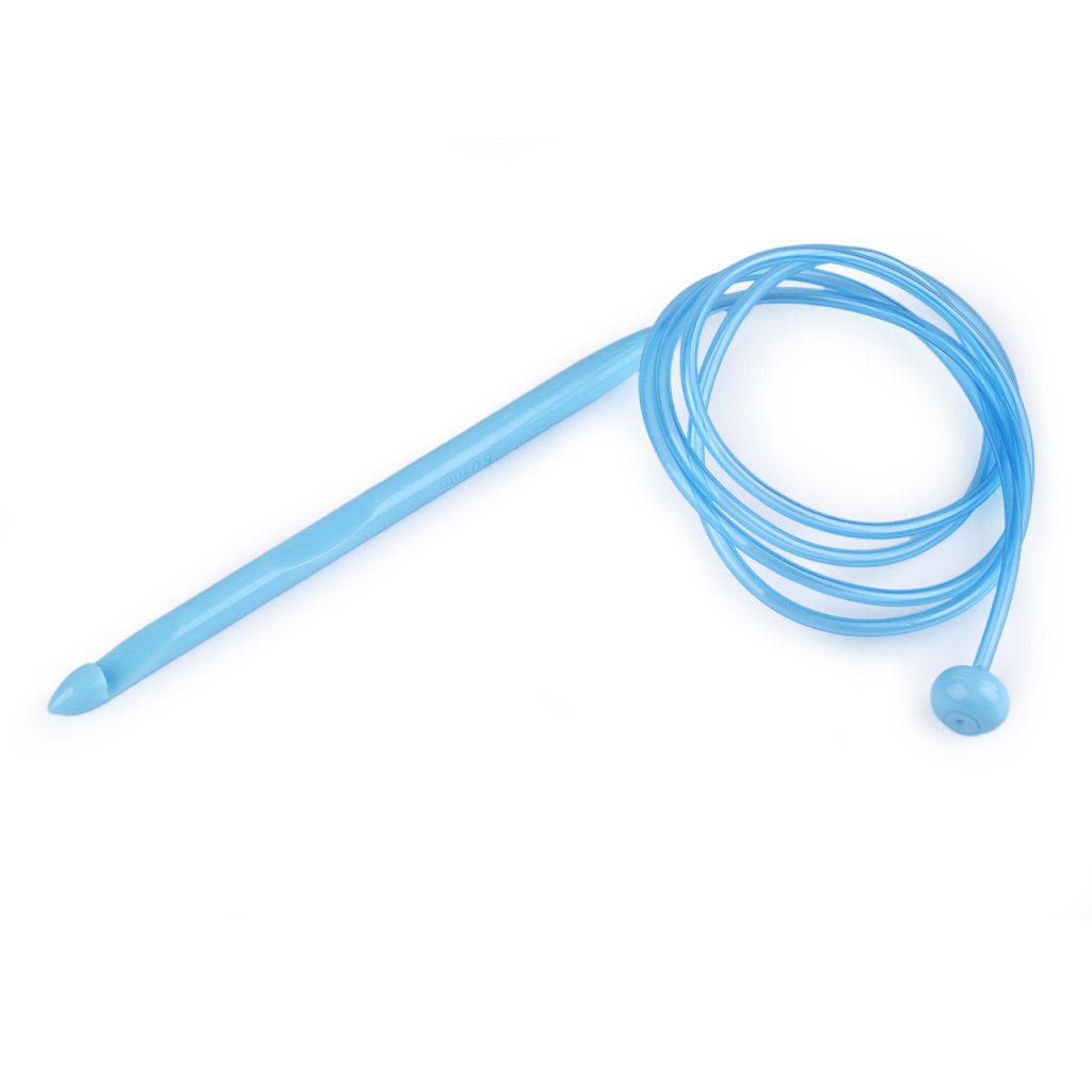 Plastový háček s bužírkou je určený na tuniské háčkování, které je silnější a méně pružnější než háčkování klasické. Díky těmto vlastnostem je tato technika vhodná na háčkování dek a zimních úpletů.