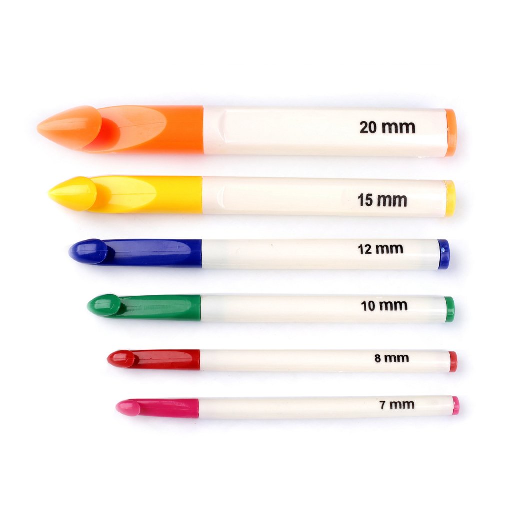 Sadu háčků na háčkování ocení každý, kdo rád háčkuje. Háčky jsou lehké, duté a vhodné na silnější příze. Sada obsahuje 6 háčků následujících velikostí: 7; 8; 10; 12; 15; 20.