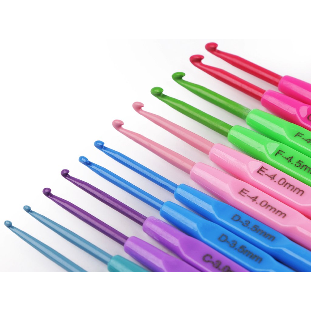 Sada obsahuje velikosti háčků 2,5; 3; 3,5; 4; 4,5; 5 - všechny velikosti jsou v párech, tudíž celkem je v sadě 12 háčků.
