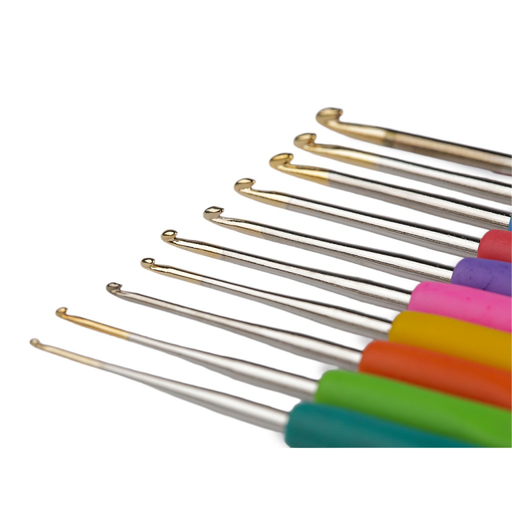 Sada háčků na háčkování je vhodná na tenké příze a bavlnky. Díky silikonové rukojeti se pohodlně drží v ruce a nekloužou.