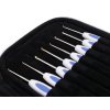 Sada háčků na háčkování je zabalena v pouzdře, které můžete snadno uzavřít pomocí zipu. Vnitřek pouzdra je sametový.