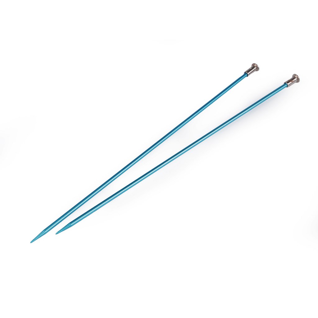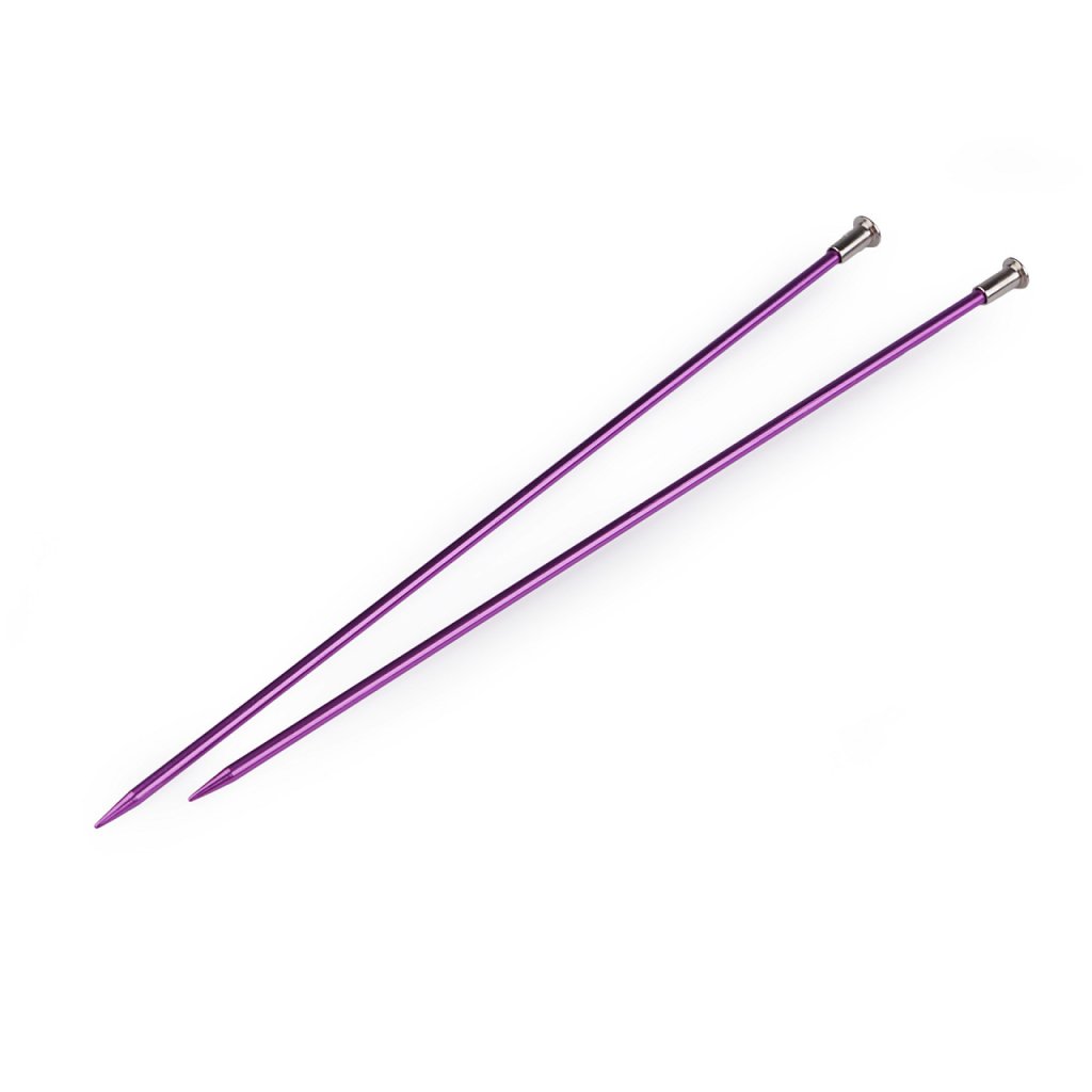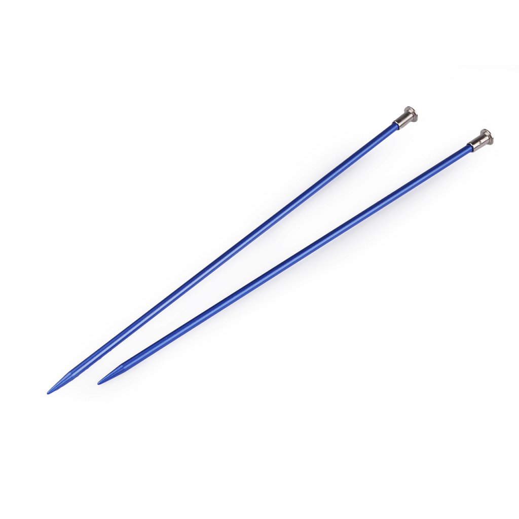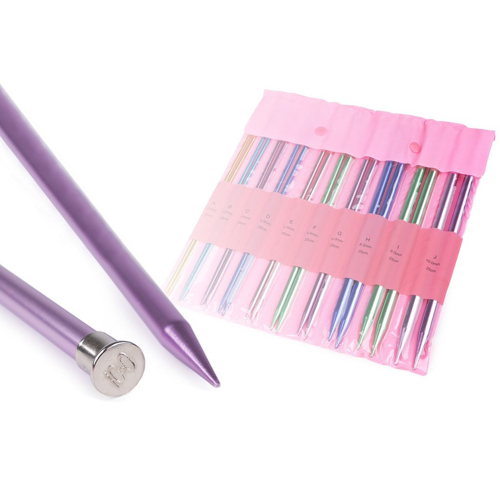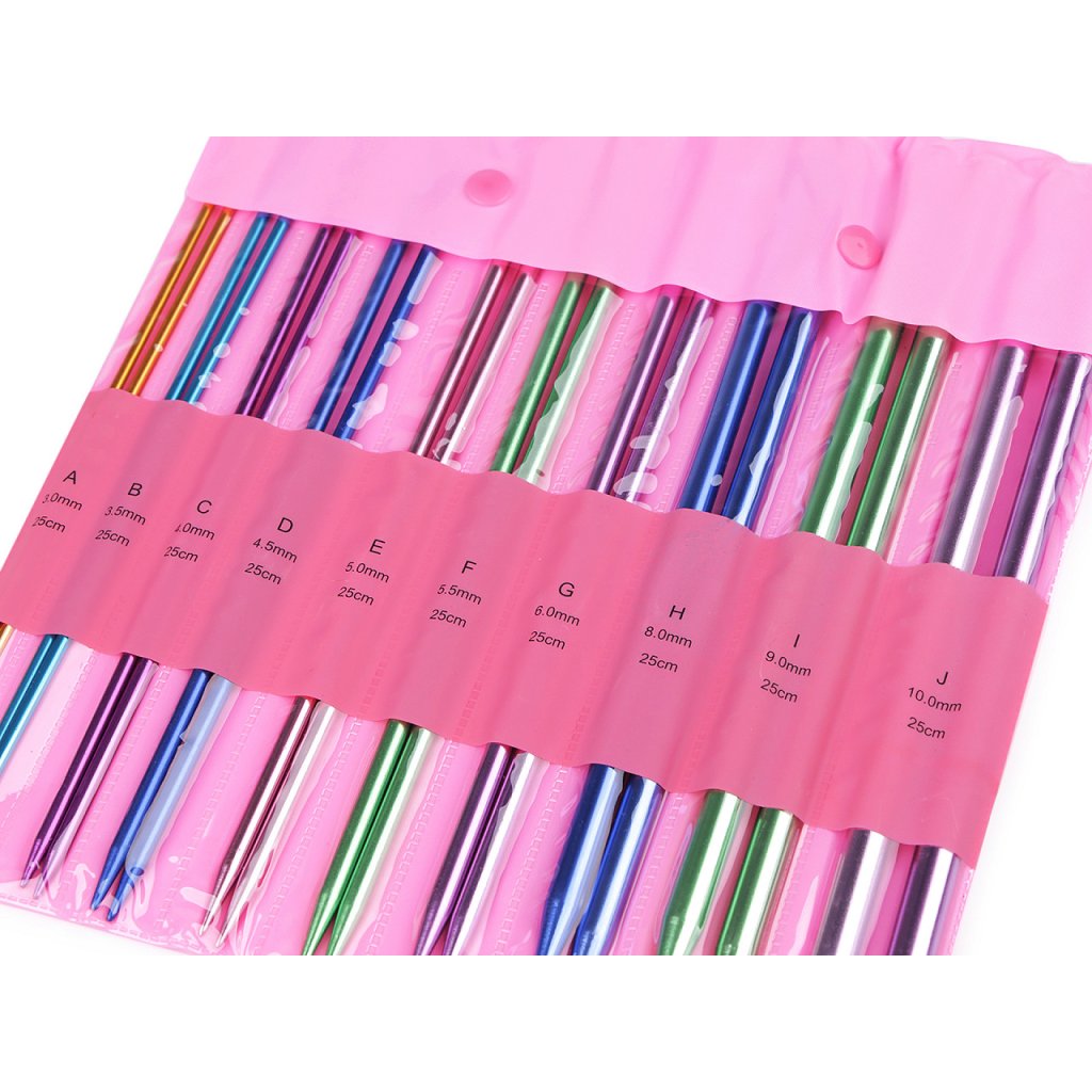 Rovné pletací jehlice jsou lehké a mají lehce prodlouženou špičku na pohodlné pletení. Dobře se drží v ruce. Velikost průměru je barevně odlišena. Po jejich hladkém povrchu se snadno posouvá příze.
