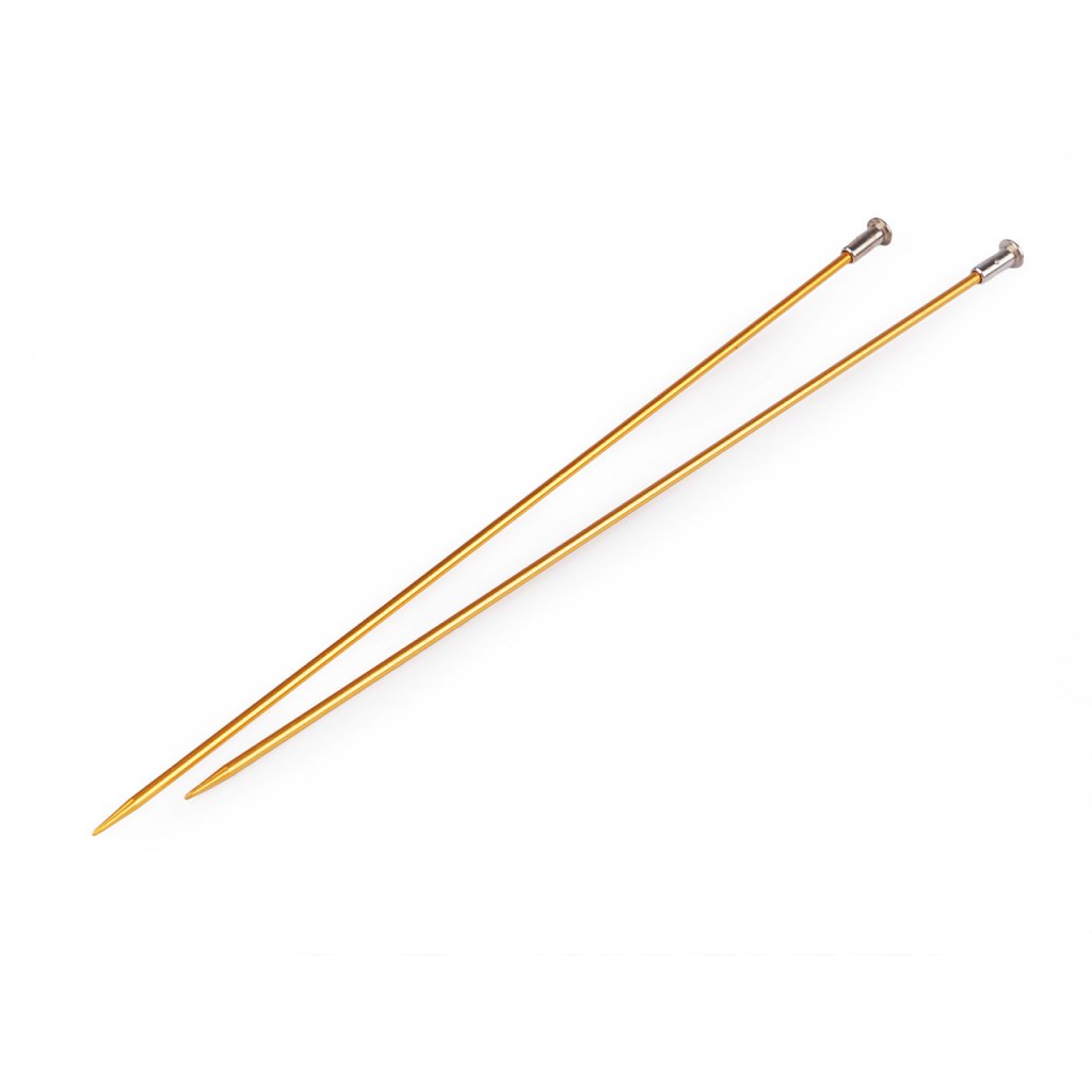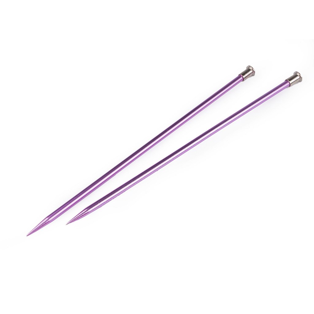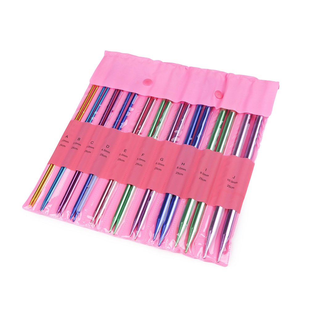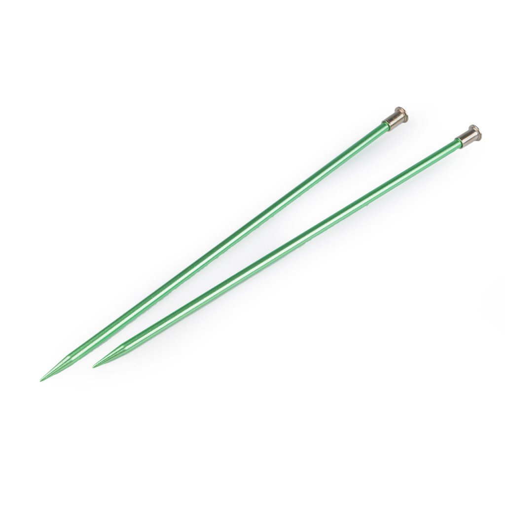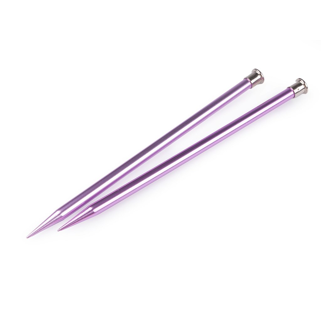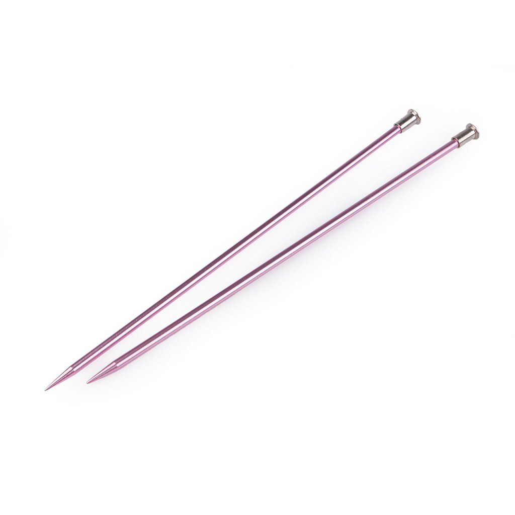 Rovné pletací jehlice jsou lehké a mají lehce prodlouženou špičku na pohodlné pletení. Dobře se drží v ruce. Velikost průměru je barevně odlišena. Po jejich hladkém povrchu se snadno posouvá příze.