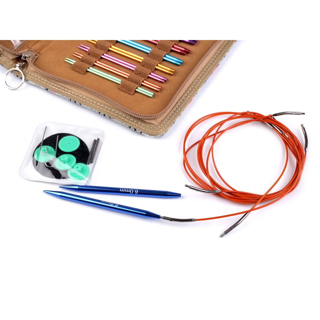 Sada kruhových jehlic je praktickým společníkem pro všechny, kdo rádi pletou. Využijete ji nejen doma, ale také třeba při cestování. Jehlice si dle preferované velikosti našroubujete na lanko.