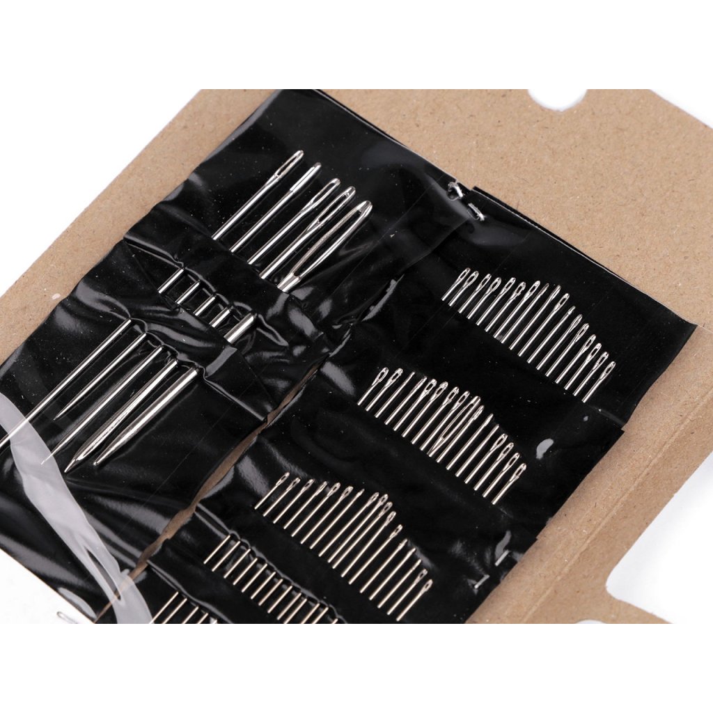 Sada univerzálních jehel na ruční šití či vyšívání. Najdete zde 55 kusů jehel různé délky, průměru a velikostí uch, kromě klasických jehel je tu jehla na pytlovinu, tupá jehla na vlnu a dlouhé šicí jehly.