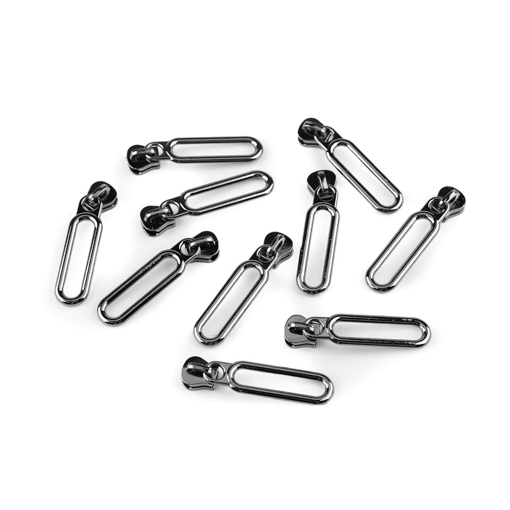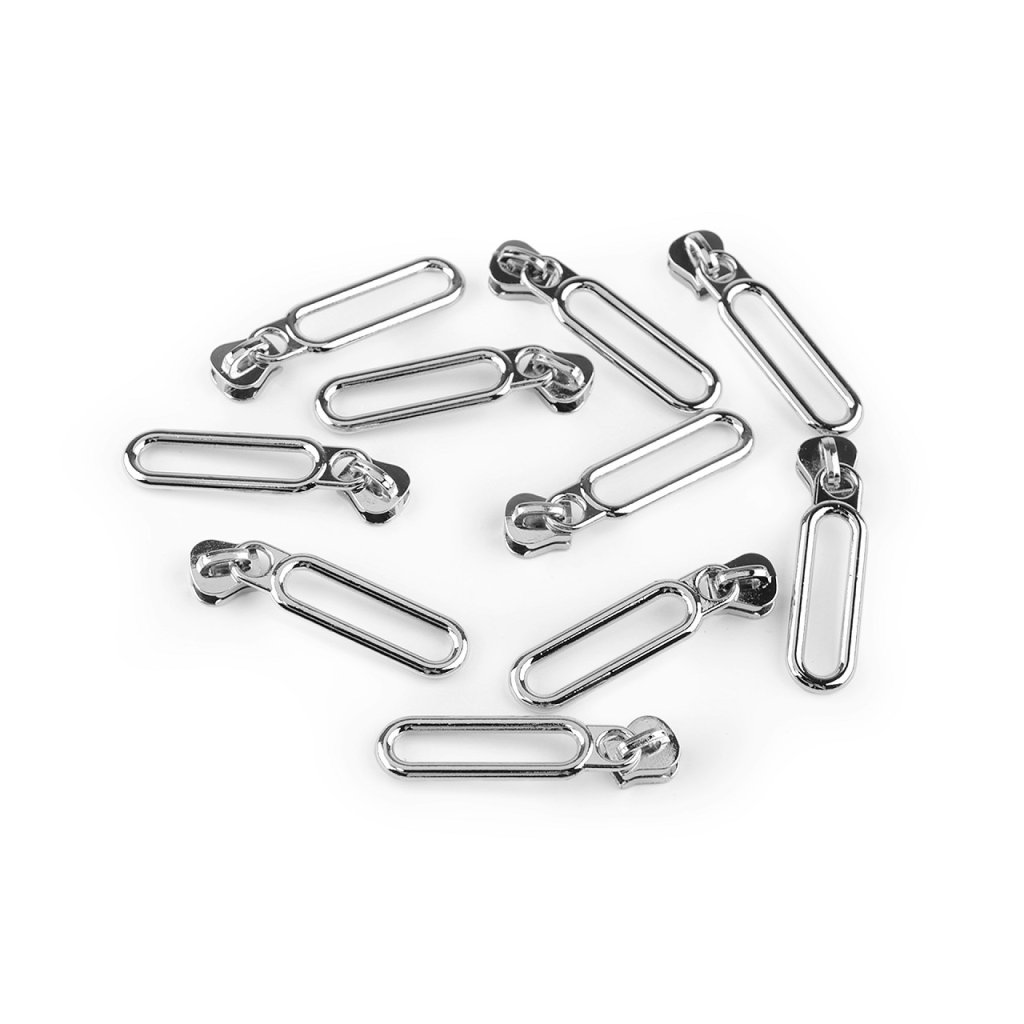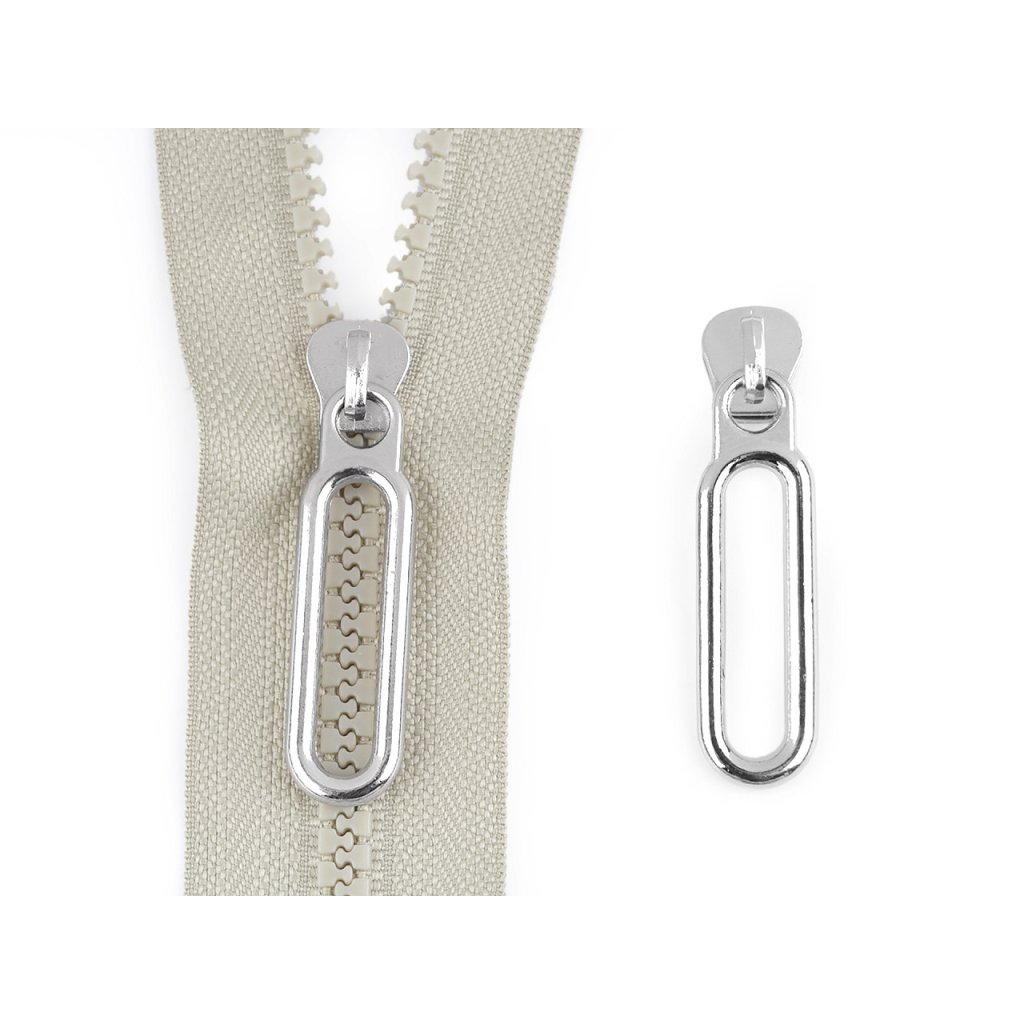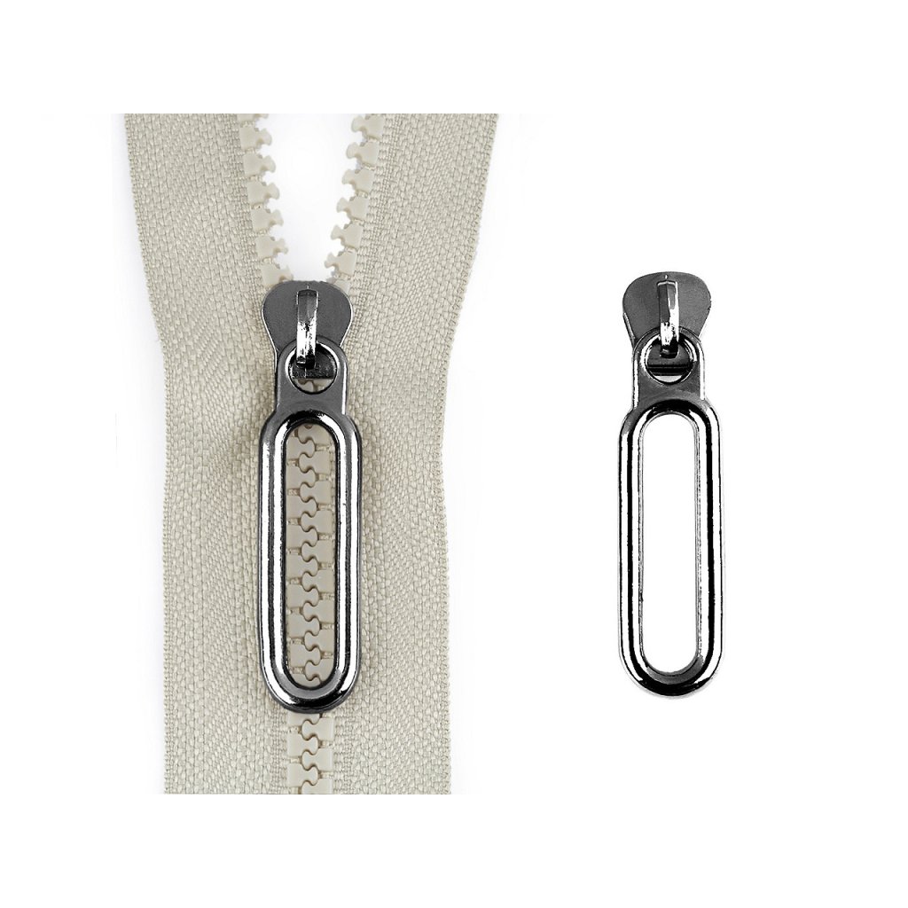 Kovový jezdec s velkým ozdobným taháčkem je určený ke kostěným zipům v metráži, které u nás najdete pod kódy 090848, 900945, 900947, 900847, 900949 a 900950.