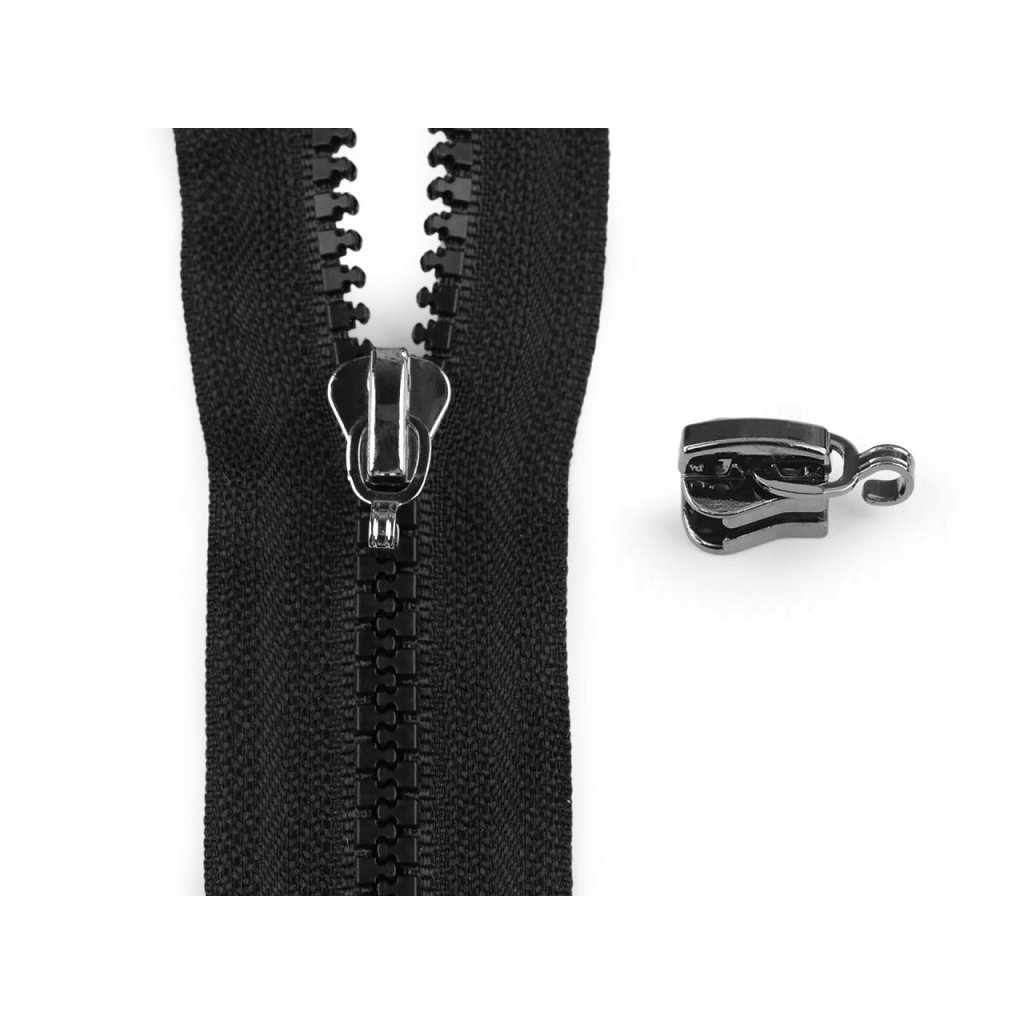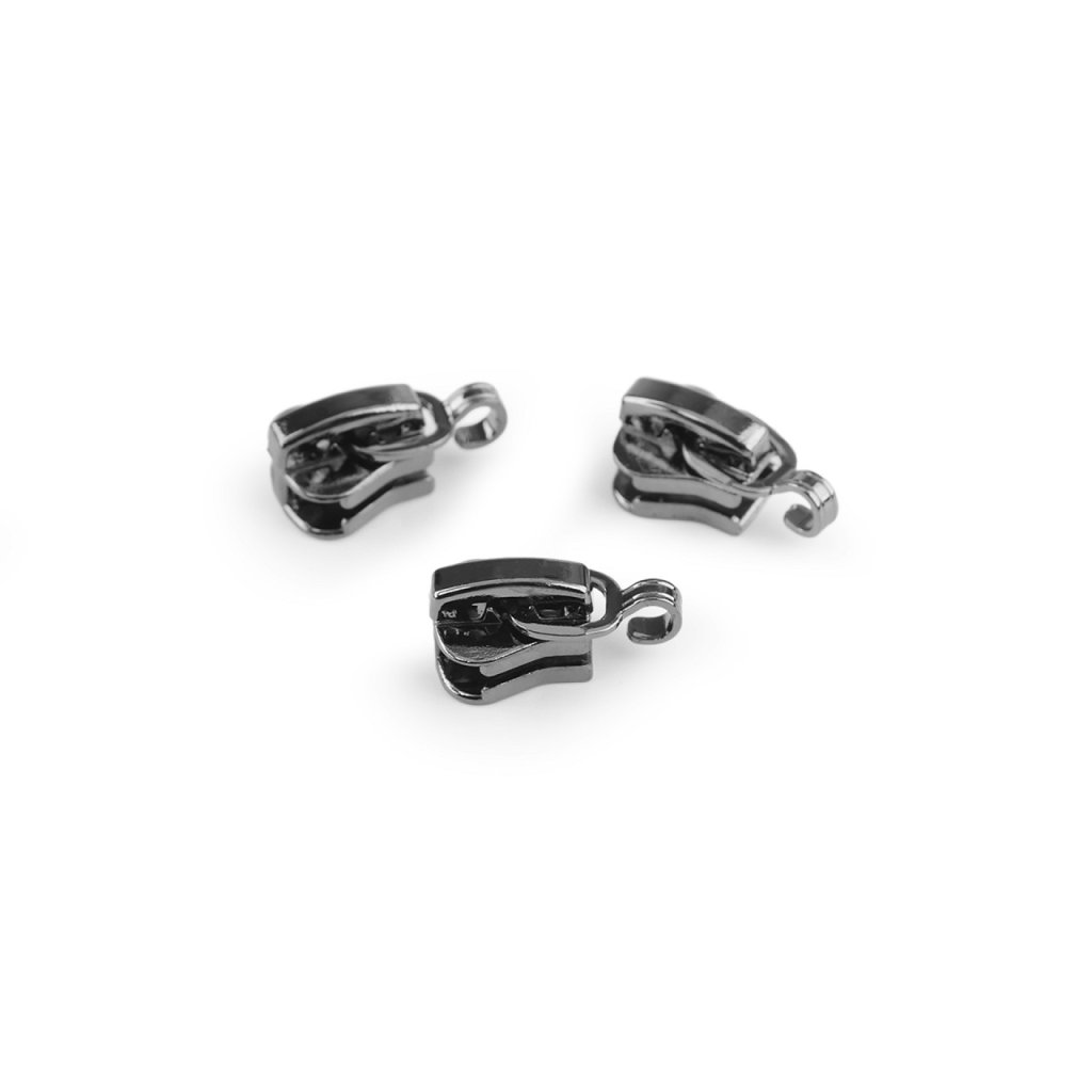 Kovový jezdec je určený ke kostěným zipům No 5. U nás sedí na zipy, které najdete pod kódem 090847, 900950, 900949, 900947, 090848. Jezdec je bez taháčku, má jen háček, na který si připevníte taháček dle vlastního vkusu či potřeby a pomocí kleští (které u nás najdete pod kódem 070813 nebo 090983) zamáčknete.
