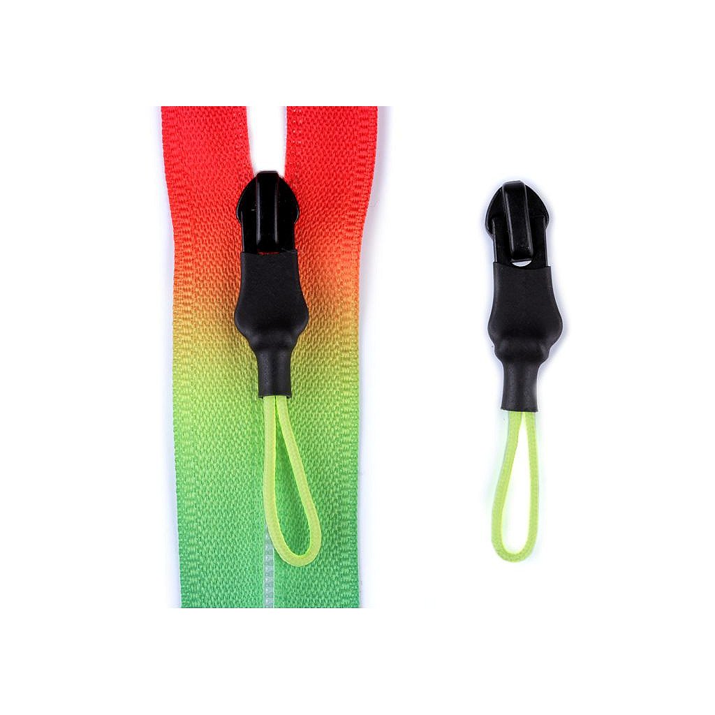 Kovový jezdec je určený ke spirálovým zipům v metráži s šířkou 5 mm. Díky delšímu poutku se s ním dobře manipuluje.