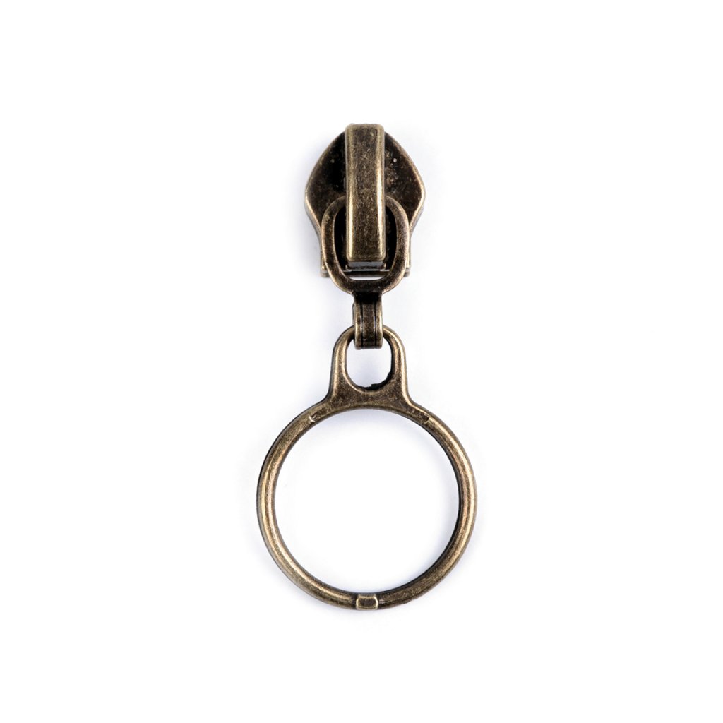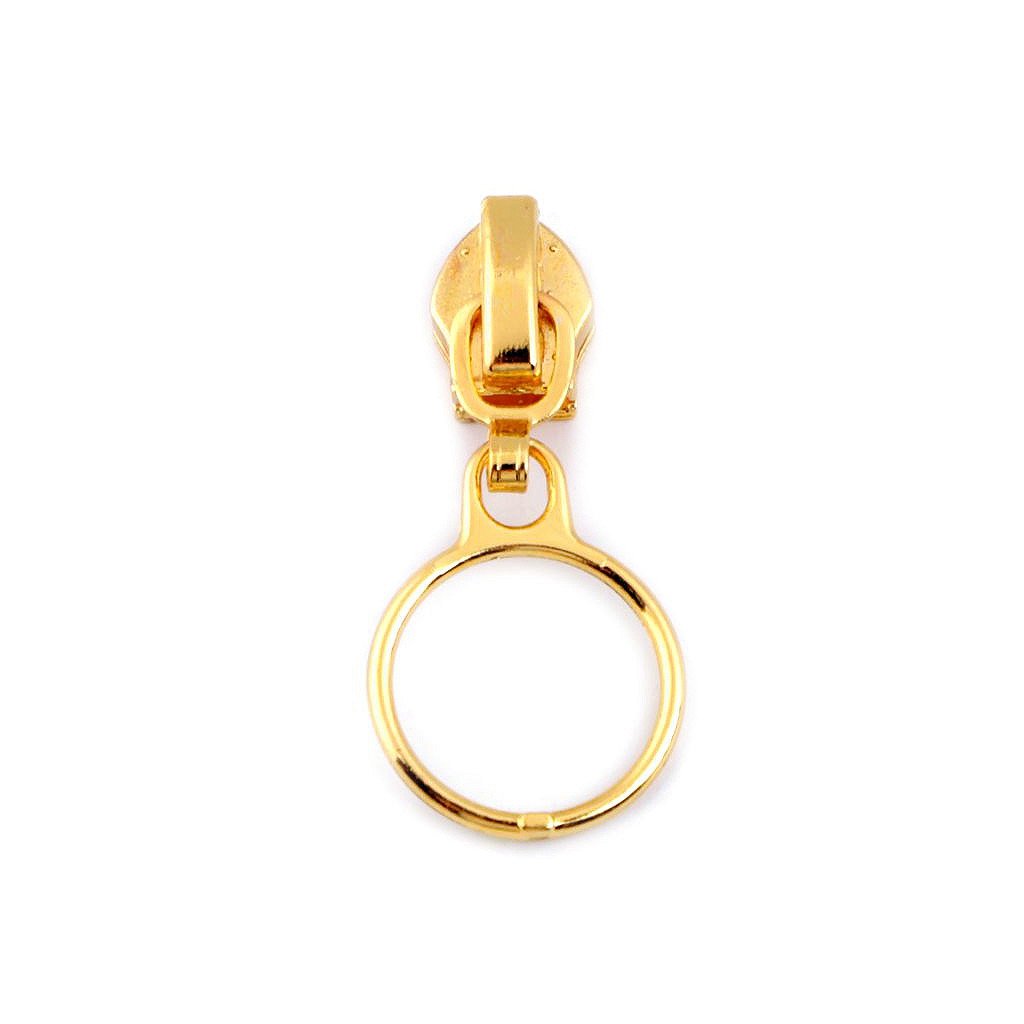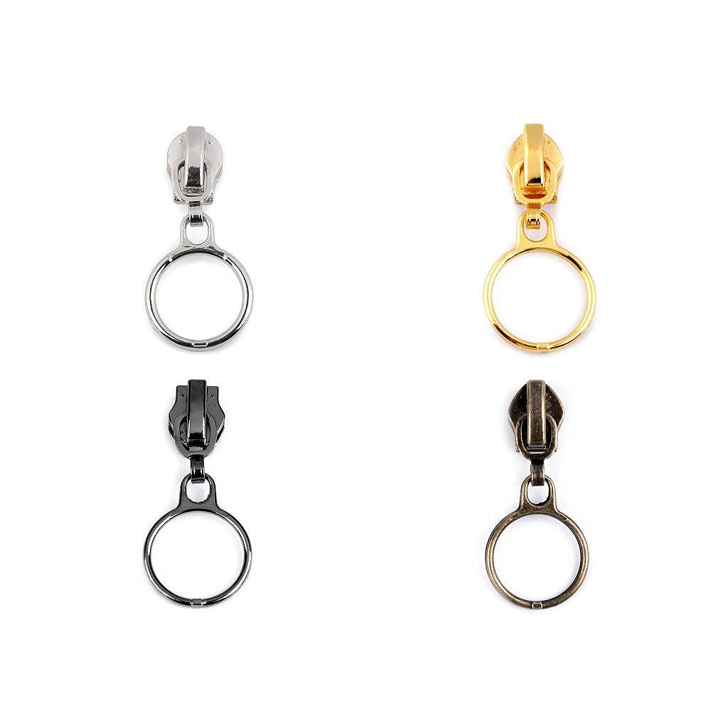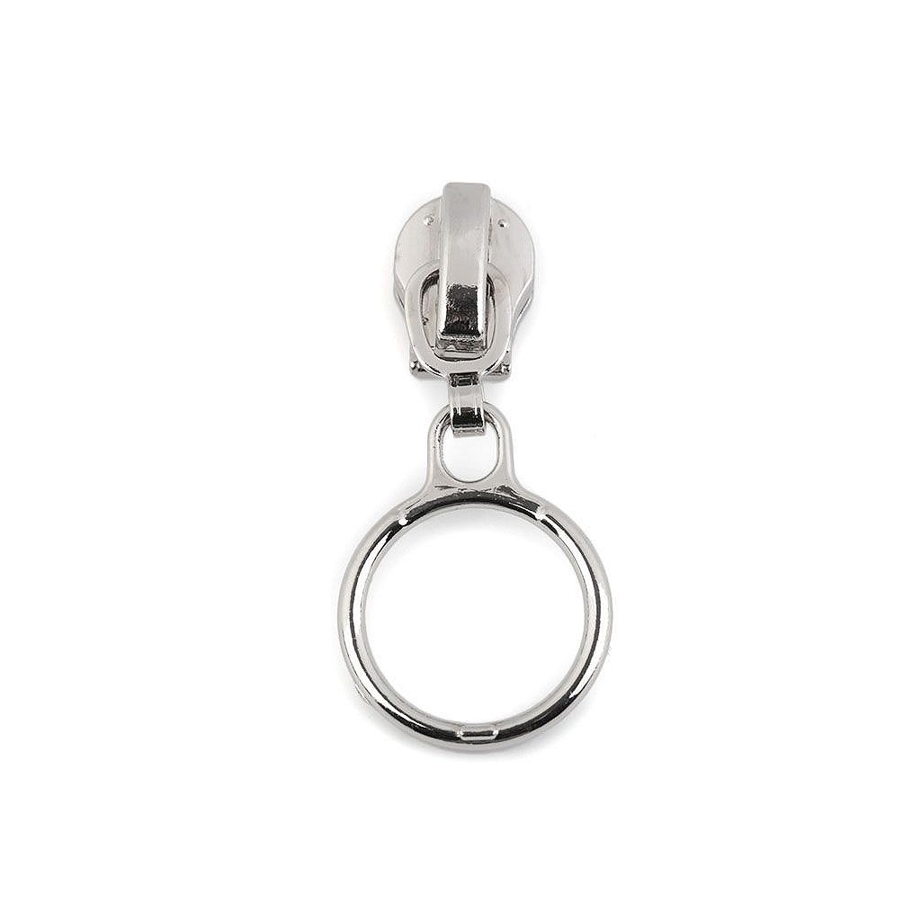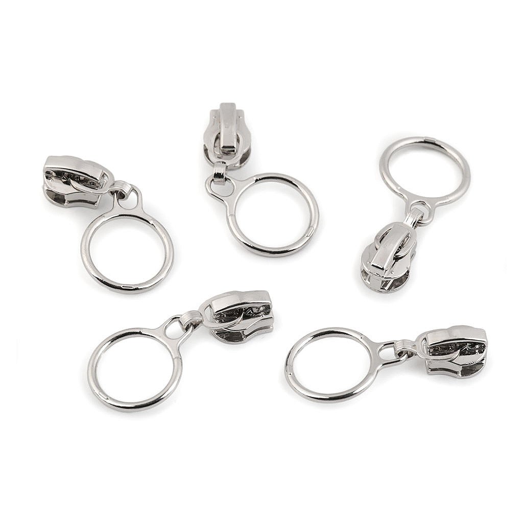 Kovový jezdec s táhlem v podobě kroužku je určený ke spirálovým zipům v metráži, které u nás najdete pod kódem 790304, 800963, 750994, 750503, 790305.