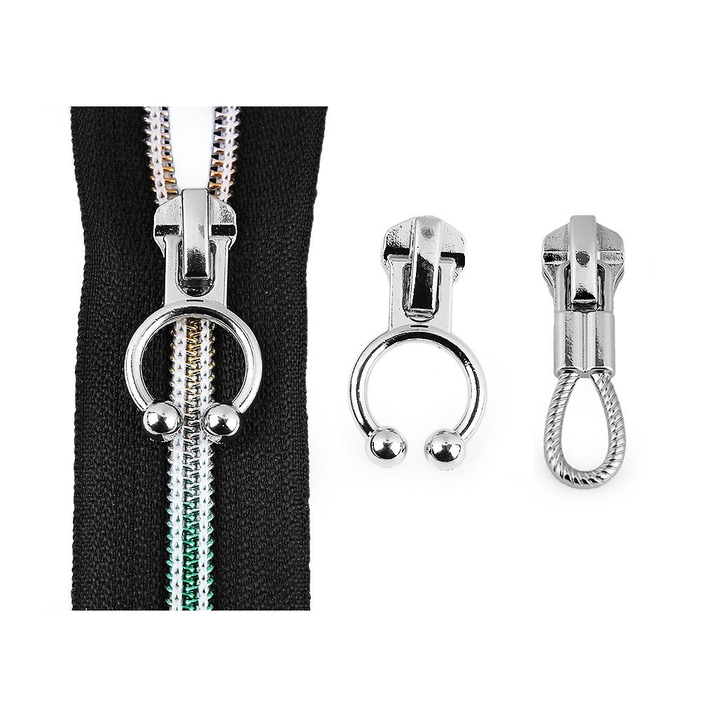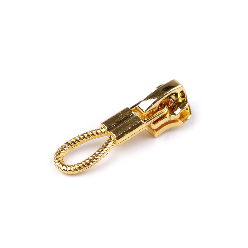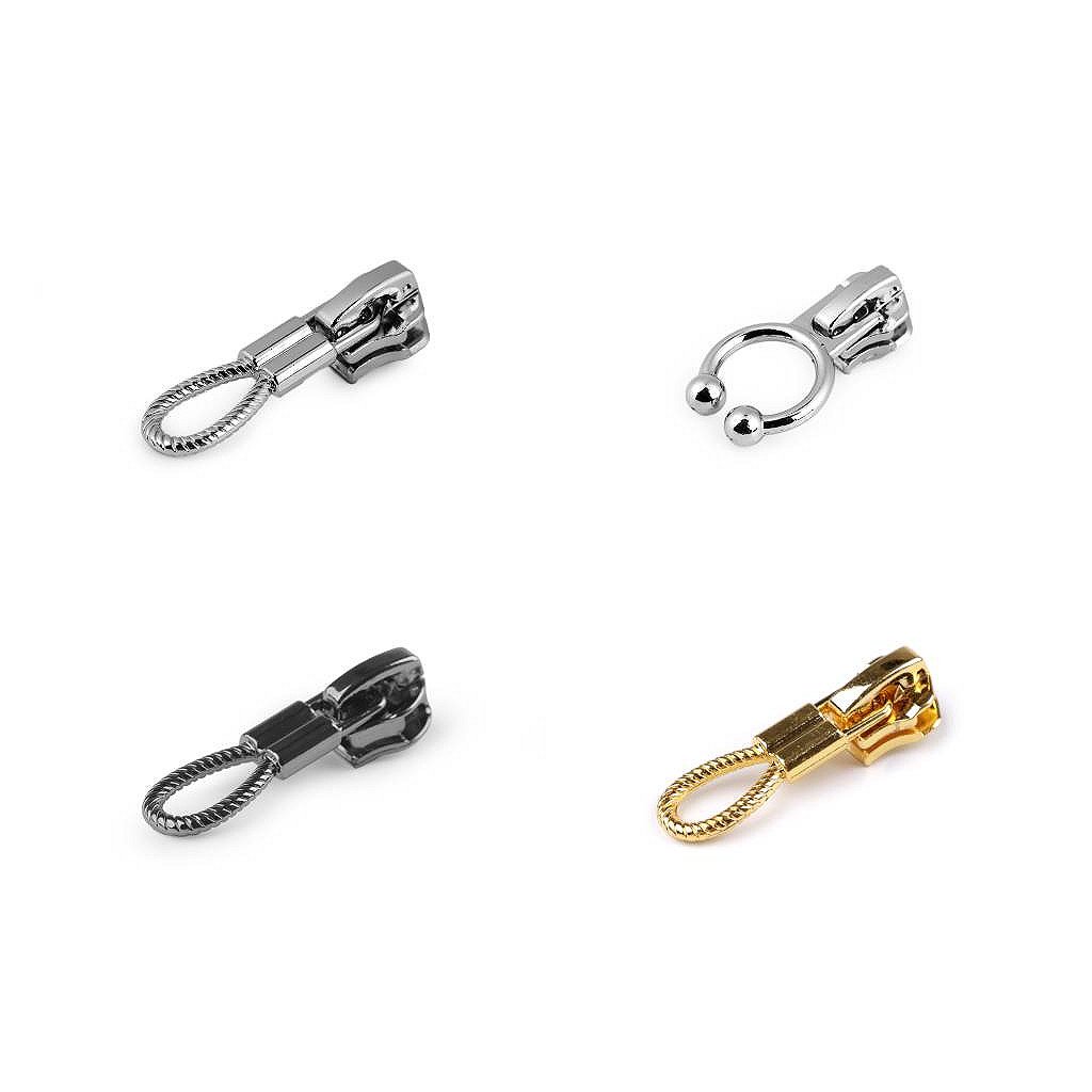 Kovový jezdec s designovým táhlem je určený ke spirálovým zipům v metráži. Vynikne na mikinách, šatech i bundách.