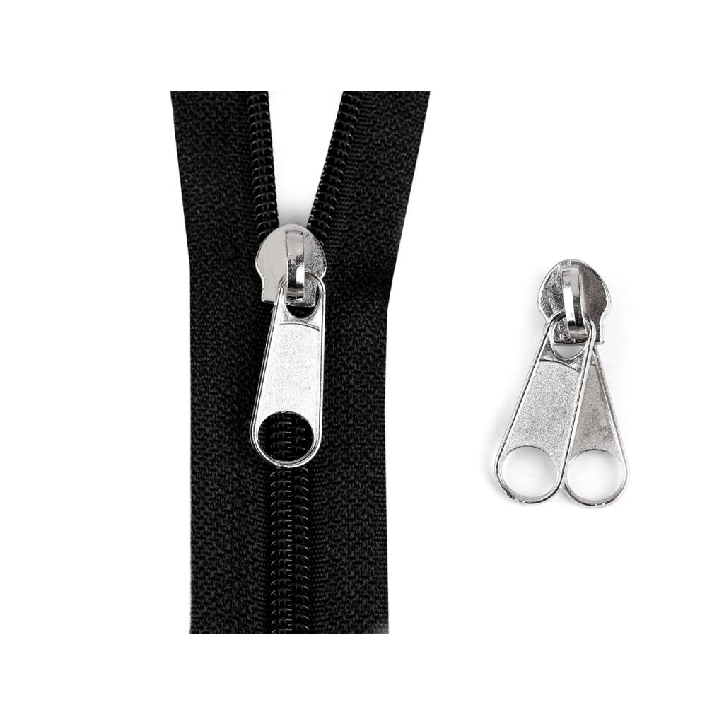 Oboustranný kovový jezdec je určený ke spirálovému zipu v metráži, který najdete pod kódem 730736. Nemá aretaci, je bez brzdy. Využijete ho hlavně na stanové zipy, spacáky, batohy, kufry apod.