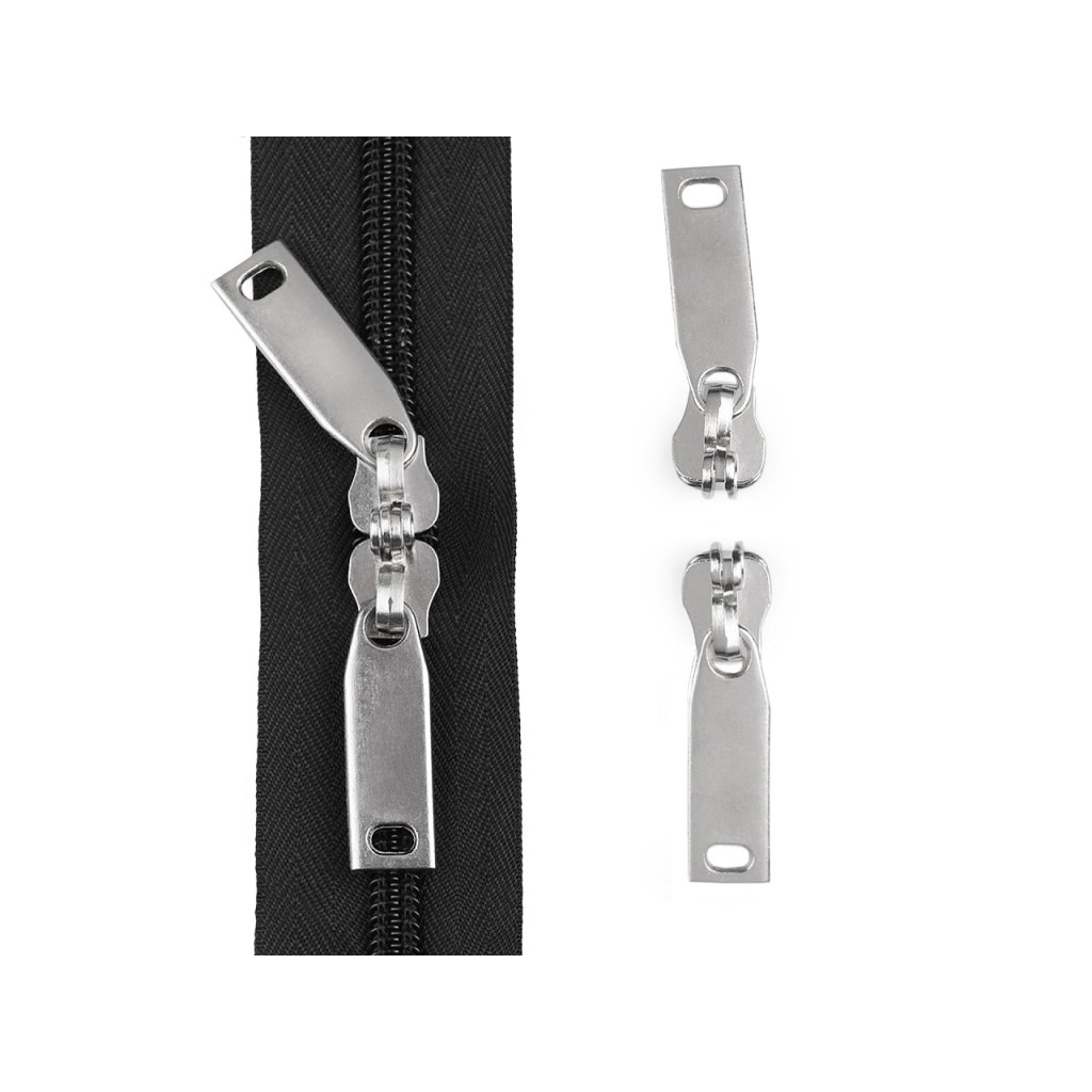 Kovový jezdec je určený ke spirálovému zipu šíře 7 mm. Díky očkům ho využijete na batohy, kufry, kabelky a na všechna místa, která potřebujete mít zamčená. Do oček se vejde malý zámek. Kvůli uzamčení je nutné použít 2 ks jezdců.