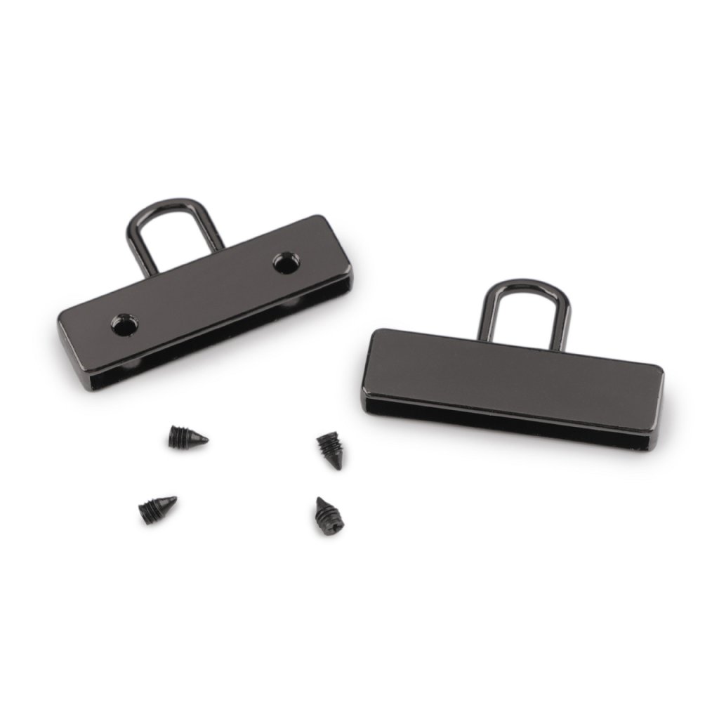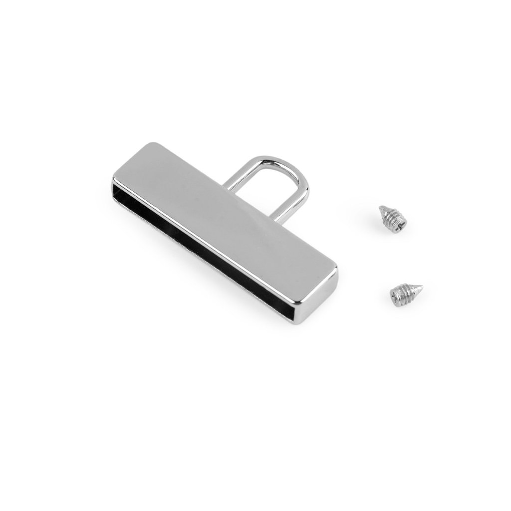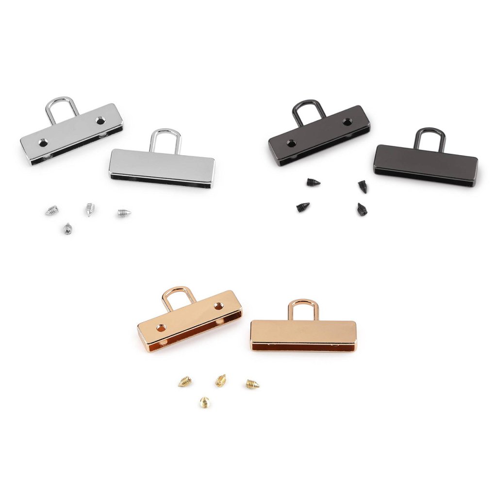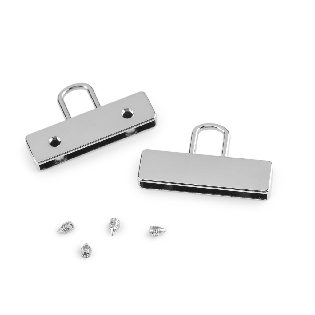 Koncovka na popruhy má vysoký lesk. Přilepíte do ní konec popruhu či jiného materiálu (s tloušťkou do 3 mm), který následně uchytíte přiloženými šroubky.