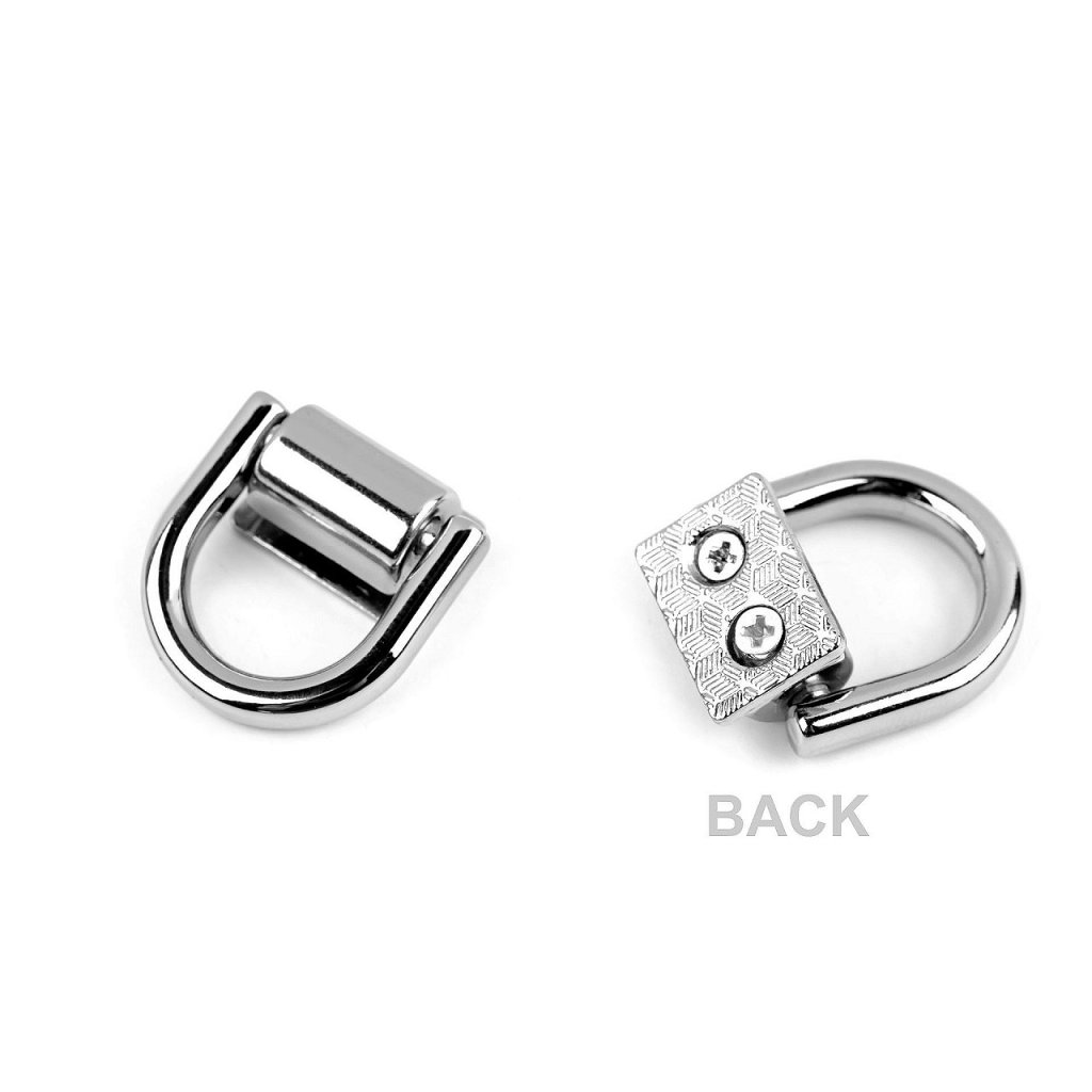 Kovový průvlek je vhodný na menší kabelky a psaníčka. Připevňuje se pomocí kovové podložky a přiložených šroubků, následně k němu upevníte ucho, popruh či řetízek.