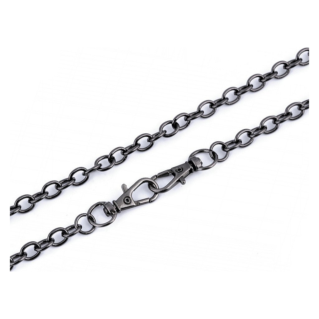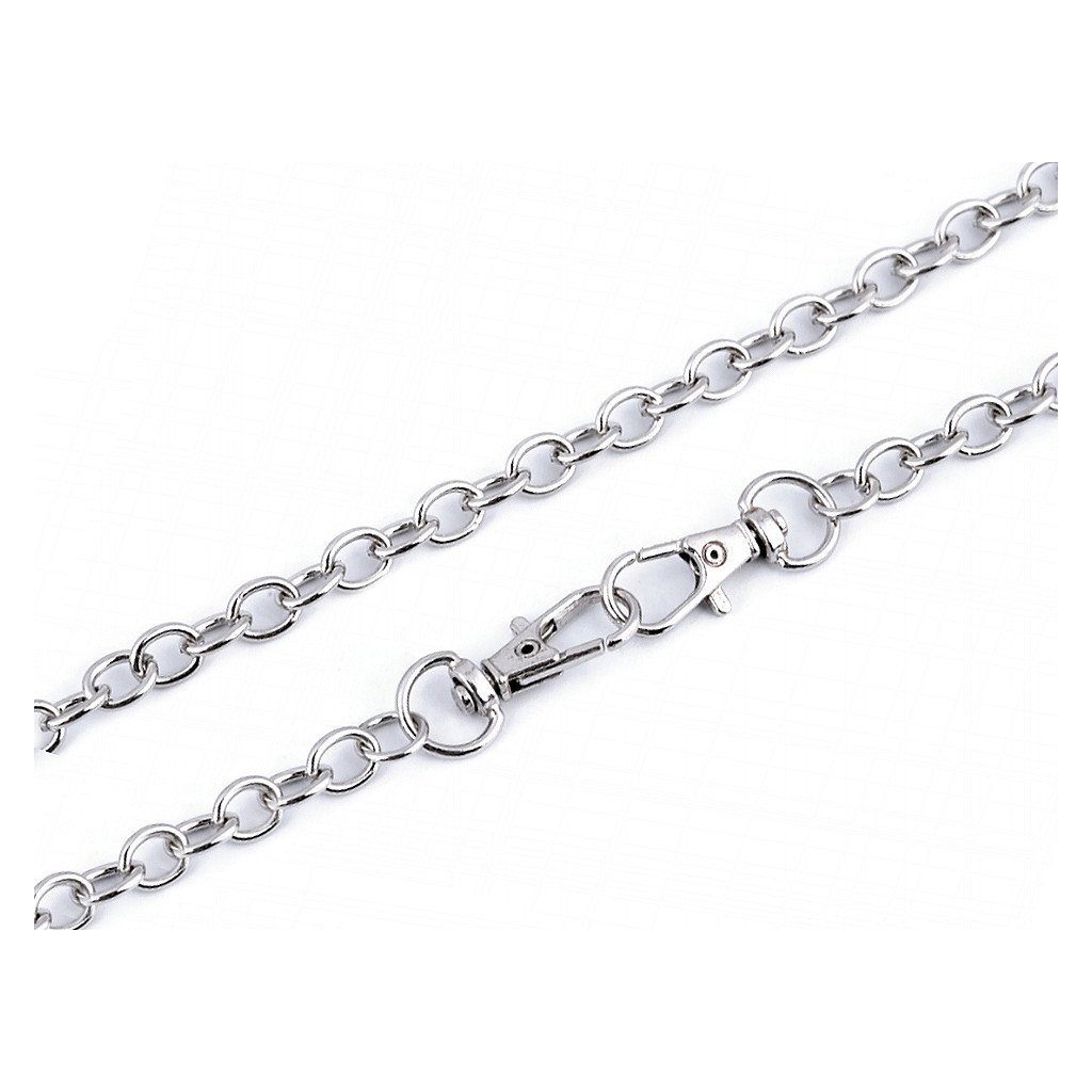 Řetízek se skládá z pevných oválných oček. Na obou koncích jsou připevněné karabinky.