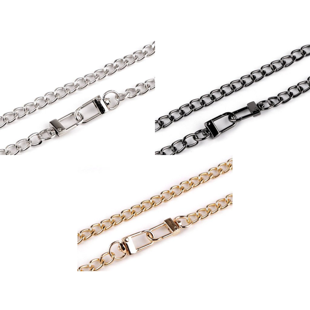 Kovový řetízek s karabinkami využijete na kabelky a psaníčka. Karabinky umožňují jeho rychlé a jednoduché připevnění.