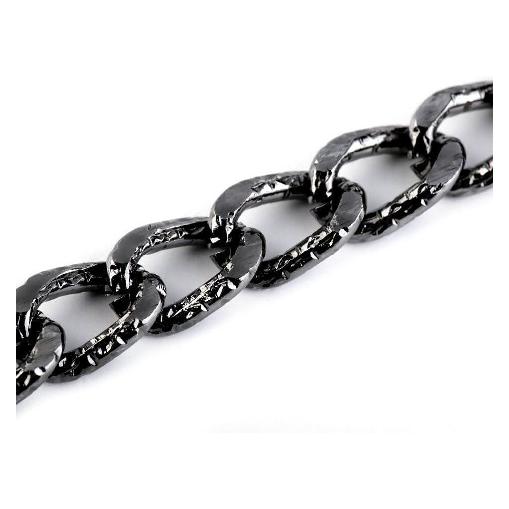 Řetízek je zajímavý svým povrchem, který zdobí reliéf. Očka jsou oválná.