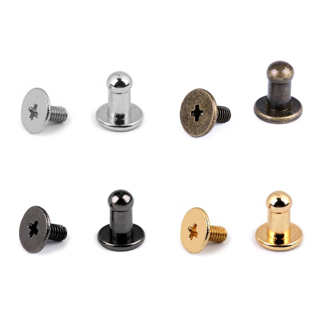 Šroubovací nýty využijete jako zapínání na tašky, kabelky, peněženky, opasky nebo výrobky z plsti a kůže.