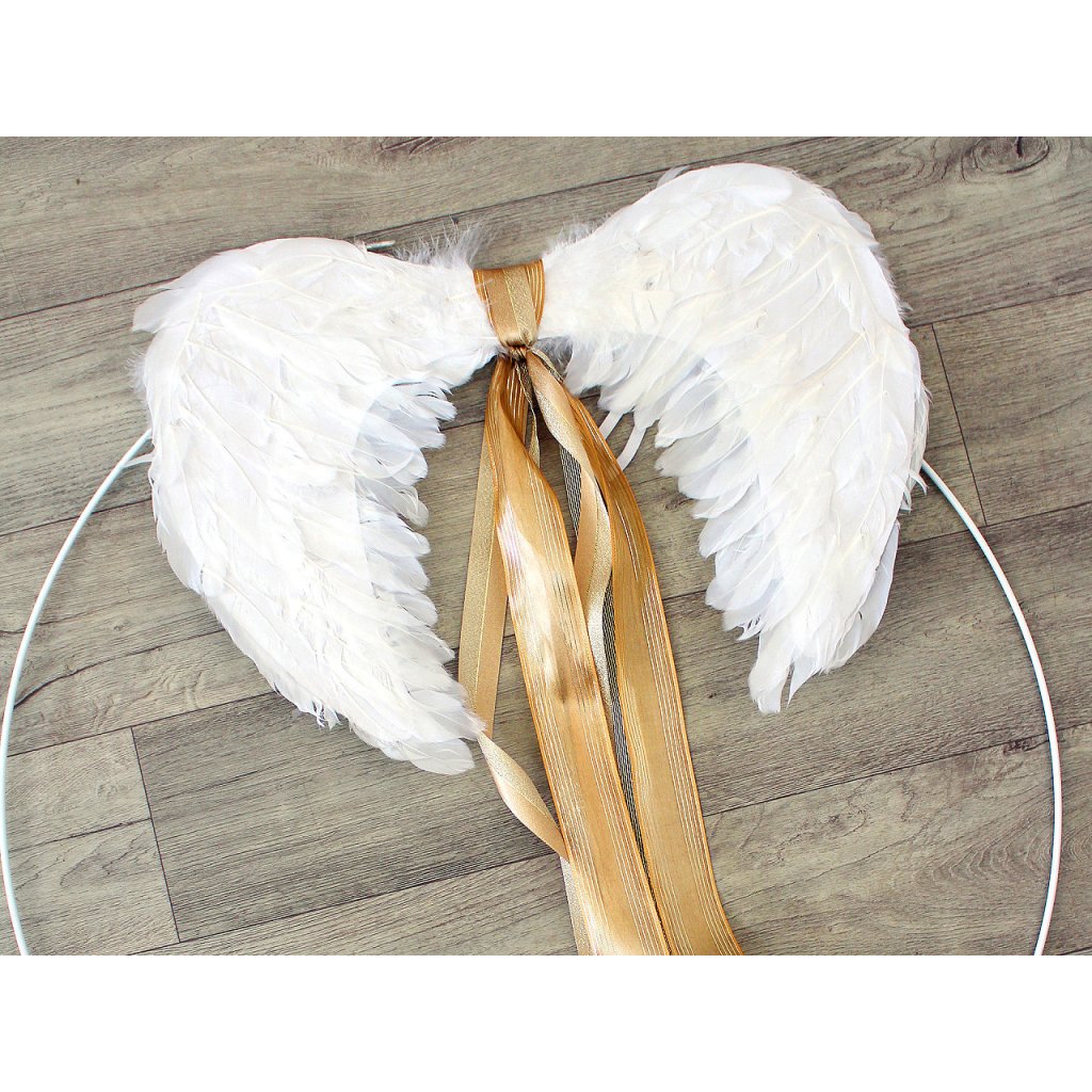 Andělská křídla jsou vyrobena z prachového peří a jsou spojena dohromady. Připevňují se pomocí dvou gumiček. Peří je z obou stran. Andělská křídla jsou nepostradatelným doplňkem každého správného andílka, který je ke svému kostýmu potřebuje, aby byla zaručena věrohodnost.