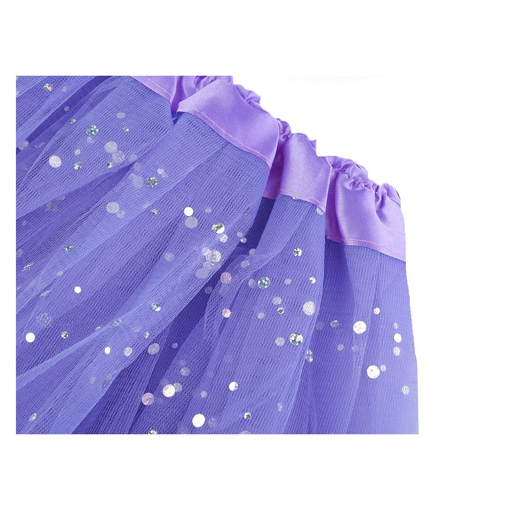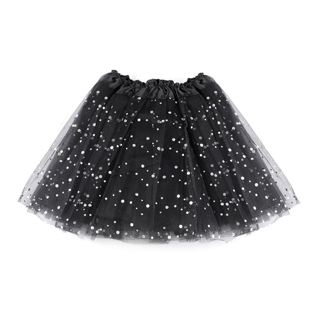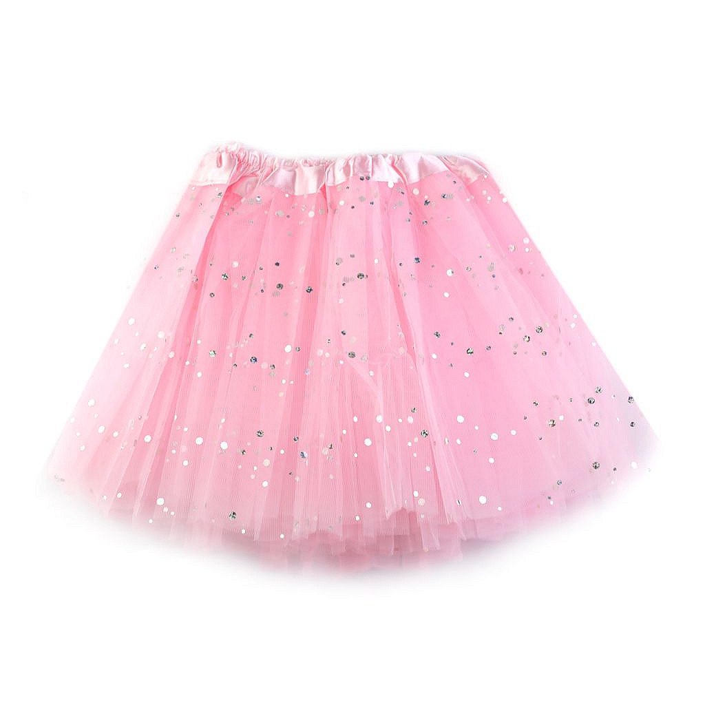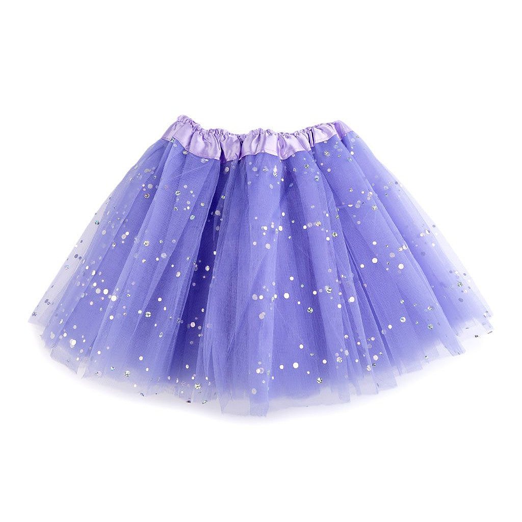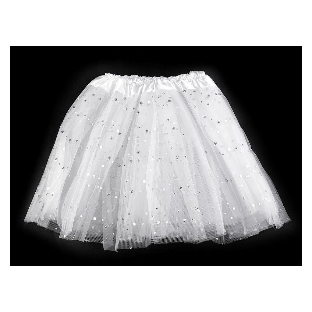 Karnevalová sukýnka pro malé princezny a víly. Skládá se ze tří tylových vrstev. Horní vrstva je pokrytá třpytivými flitry. Sukně má v pase gumičku, aby se mohla dobře přizpůsobit své nositelce.