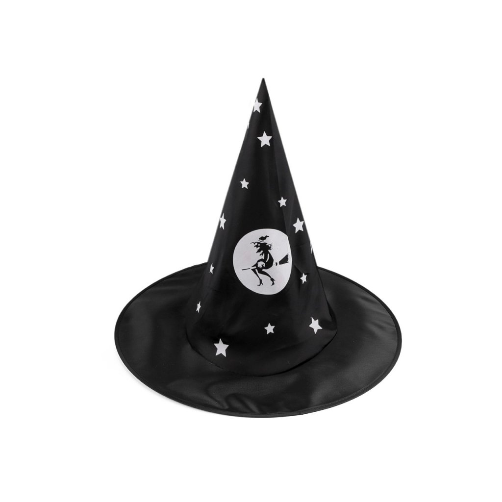 Karnevalový klobouk vás promění v čaroděje nebo čarodějnici. Dobře drží tvar, je z neprůhledné polyesterové tkaniny. Nahoře na přední straně má potisk. Můžete si ho dozdobit dle vlastního vkusu a fantazie.