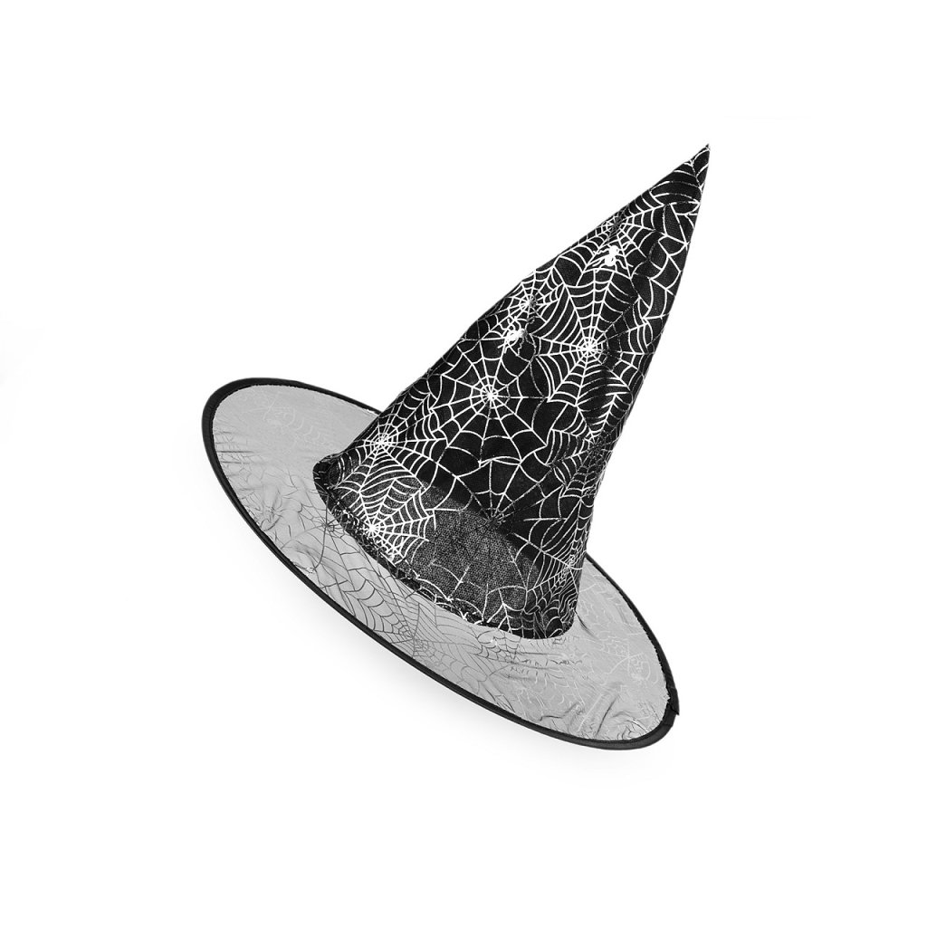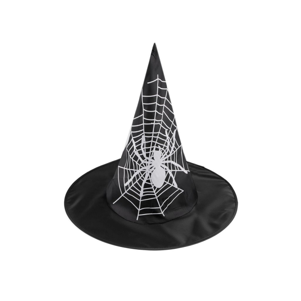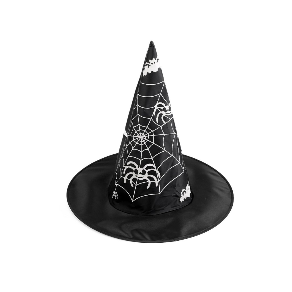 Karnevalový klobouk čarodějnický - pavučina, lebka, netopýr, dýně, čarodějnice