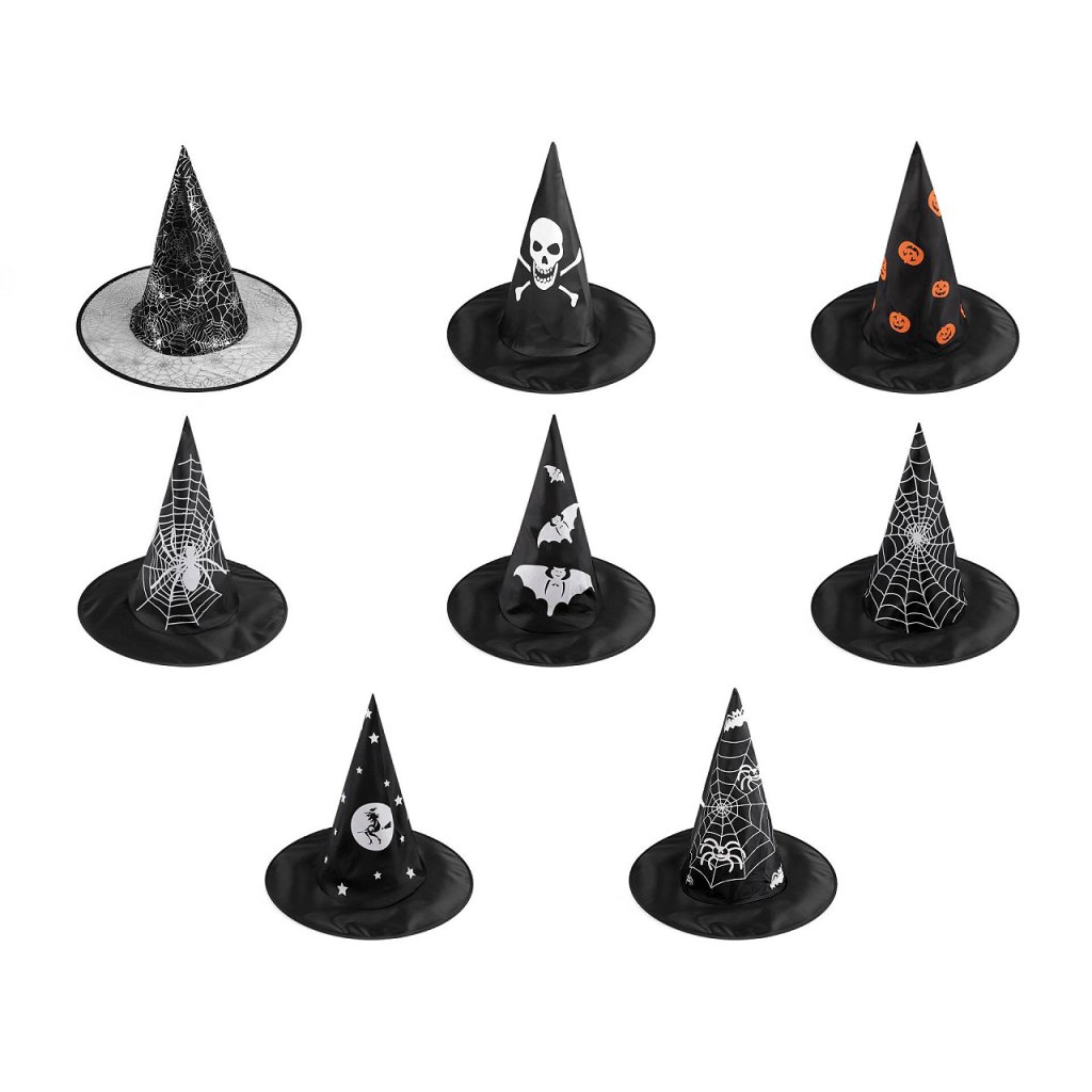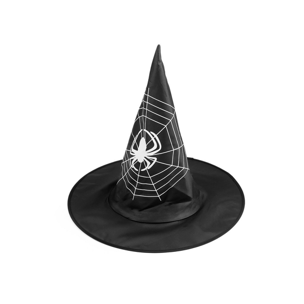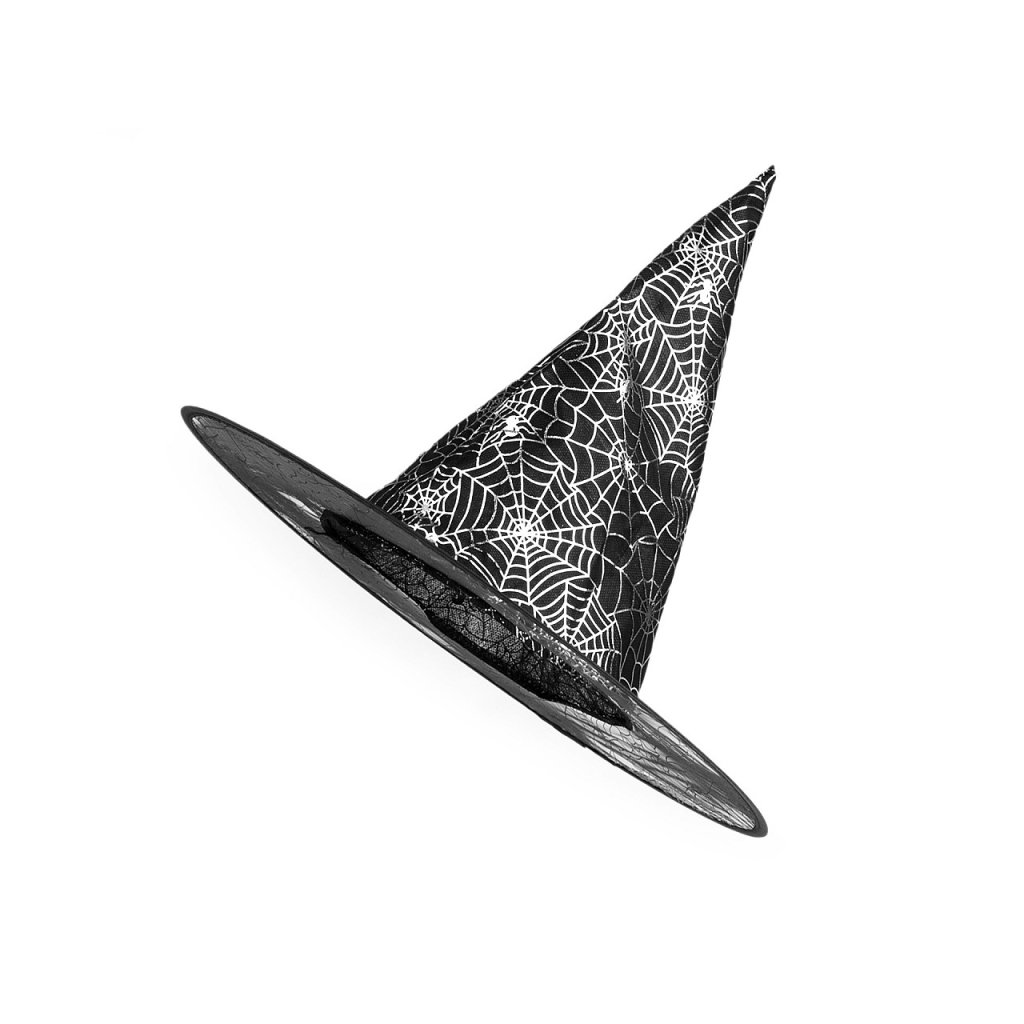 Karnevalový klobouk čarodějnický - pavučina, lebka, netopýr, dýně, čarodějnice