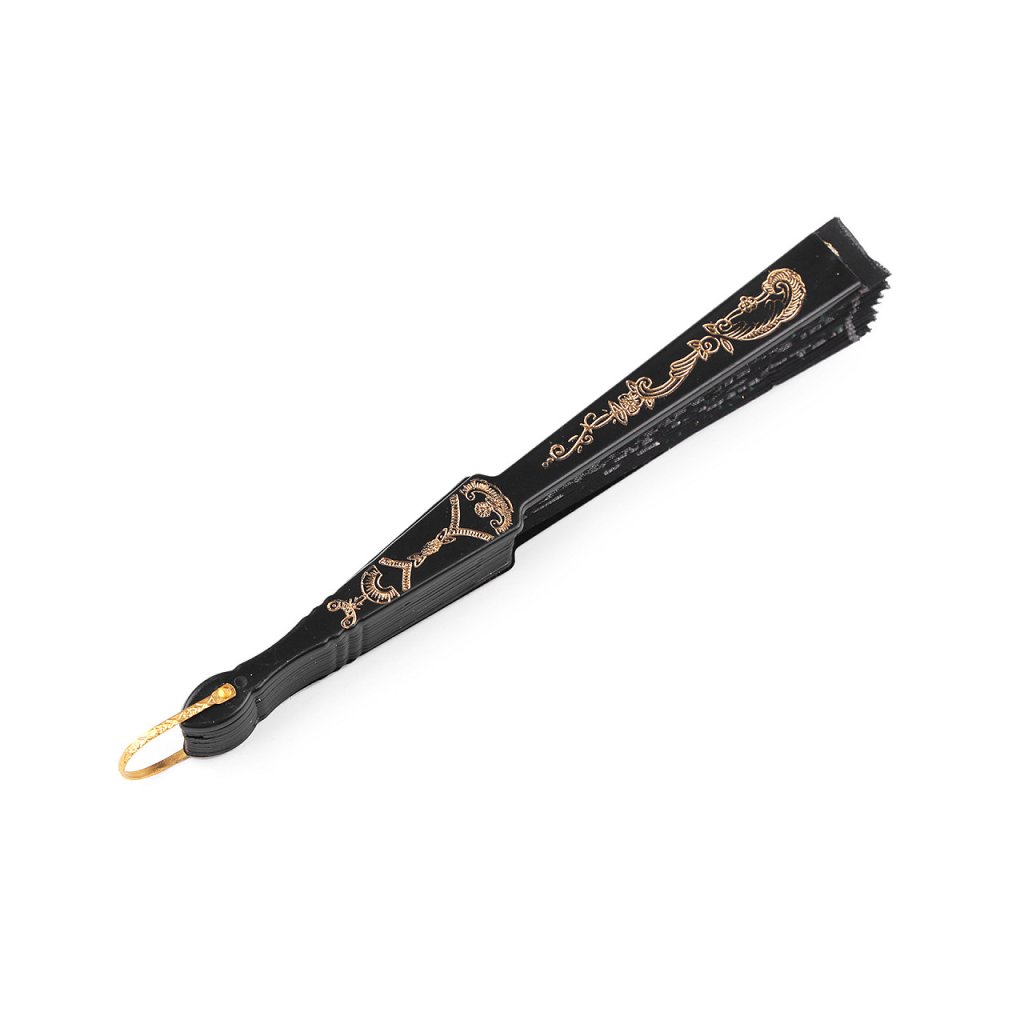 Textilní vějíř zdobí potisk květů, který je doplněný třpytivými glitry. Využijete ho na společenské události, na karnevaly i různá taneční vystoupení. Rukojeť je plastová s poutkem.