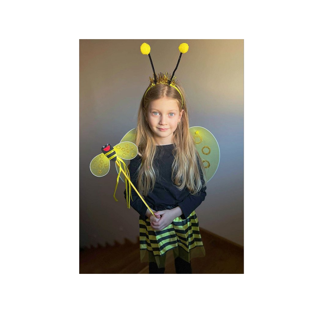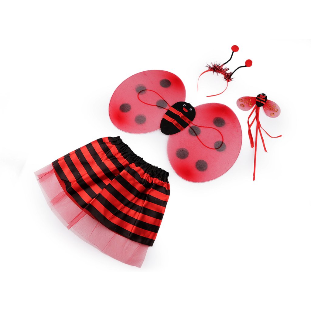 Kostým se skládá z tylové sukýnky, křídel, hůlky a čelenky s tykadly. Vyztužená křídla se nasazují pomocí gumiček.