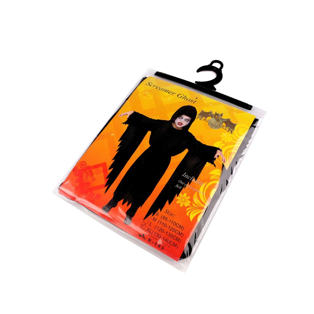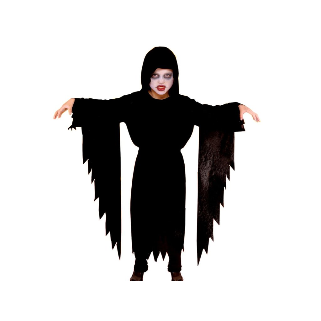 Strašidelný kostým je vhodný na karnevaly, tematické párty a Halloween. Kostým je lehoučký, z mírně elastického a splývavého materiálu. Jeho součástí jej látkový pásek.