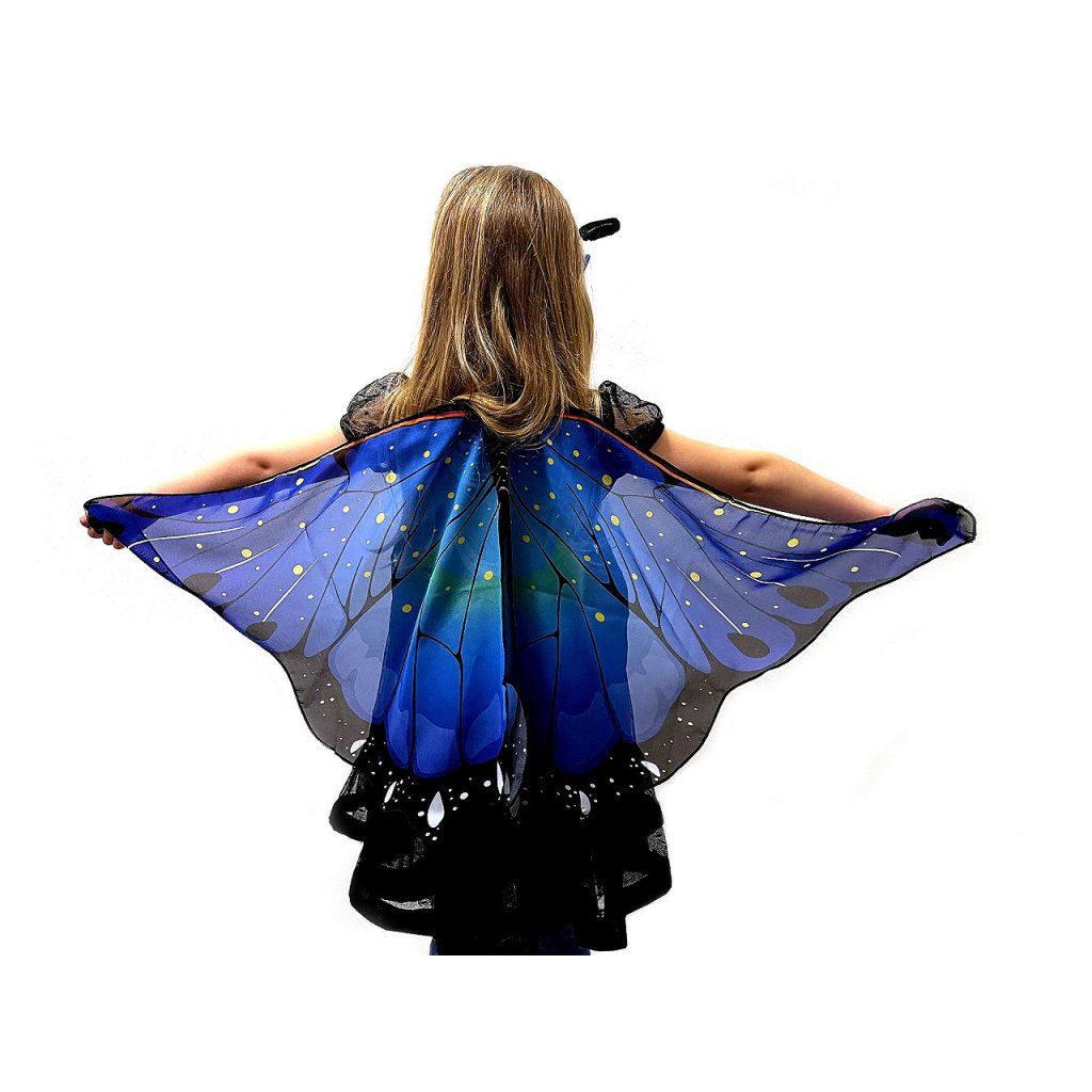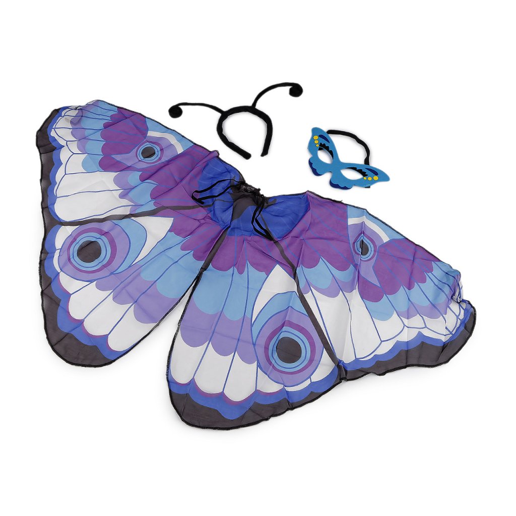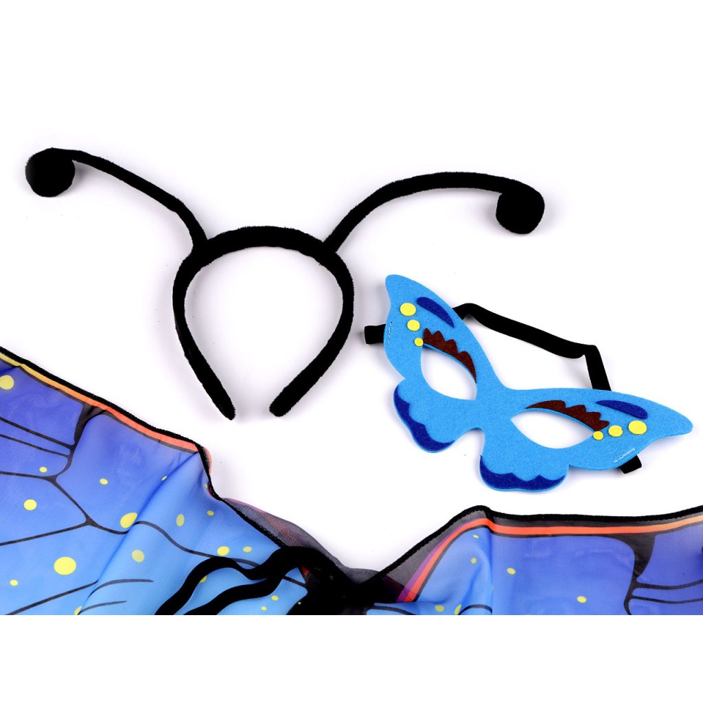 Kostým motýla promění vaše dítko na jakémkoliv karnevalu, oslavě i při dětských hrách. Skládá se z šifónových nevyztužených křídel, škrabošky a čelenky s tykadly. Křídla se nasazují pomocí gumiček přes ramena a pak se natáhnou podél rukou, kde se opět uchytí gumičkami. Tykadla na čelence v sobě mají drátek, tudíž je můžete tvarovat.
