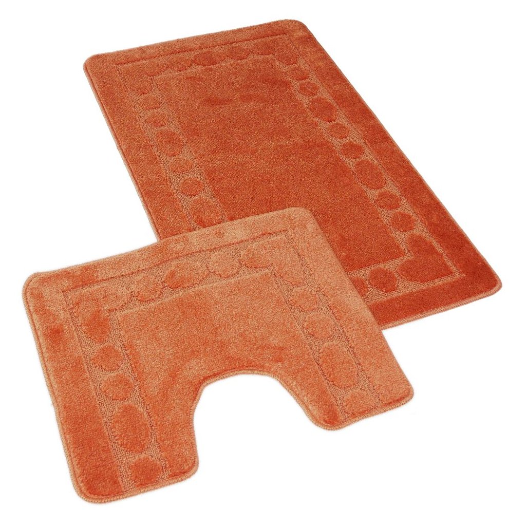 Koupelnová a WC předložka v terakotové barvě je stylová a praktická sada textilních předložek s decentním zdobením. Je vyrobena z měkkého a savého materiálu, který poskytuje komfort a zabraňuje uklouznutí na mokré podlaze. Protiskluzová spodní vrstva zajišťuje stabilitu. Snadno se udržuje, lze ji prát v pračce. Ideální doplněk pro zútulnění koupelny a WC.