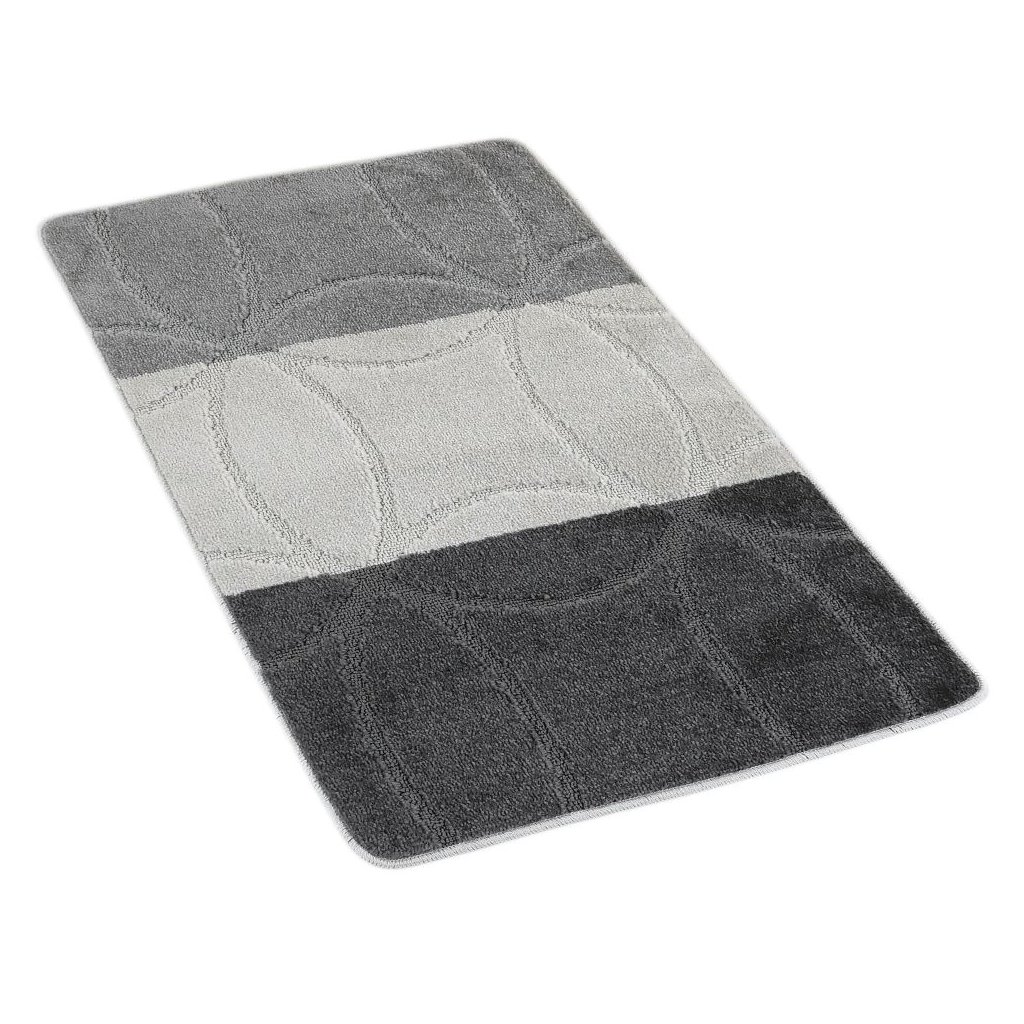 Koupelnová předložka v šedých odstínech doplňuje stylovou a praktickou sadu textilních předložek s jemným geometrickým motivem. Je vyrobena z měkkého a savého materiálu, který poskytuje komfort a zabraňuje uklouznutí na mokré podlaze. Protiskluzová spodní vrstva zajišťuje stabilitu. Snadno se udržuje, lze ji prát v pračce. Ideální doplněk pro zútulnění koupelny a WC.