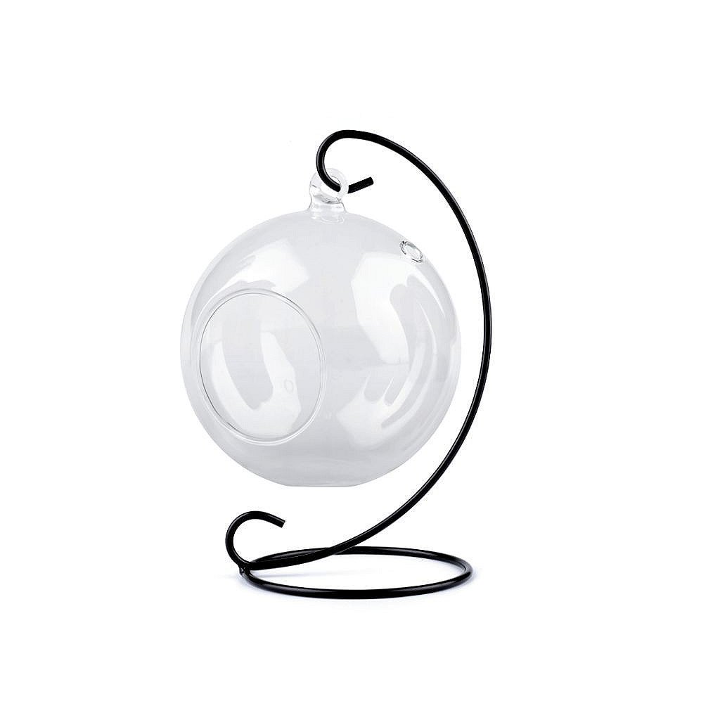 Kovový stojan má jednoduchý, ale efektní design. Využijete ho na zavěšení skleněných aerárií nebo baněk. Stojan má dobrou stabilitu a povrchový nástřik.