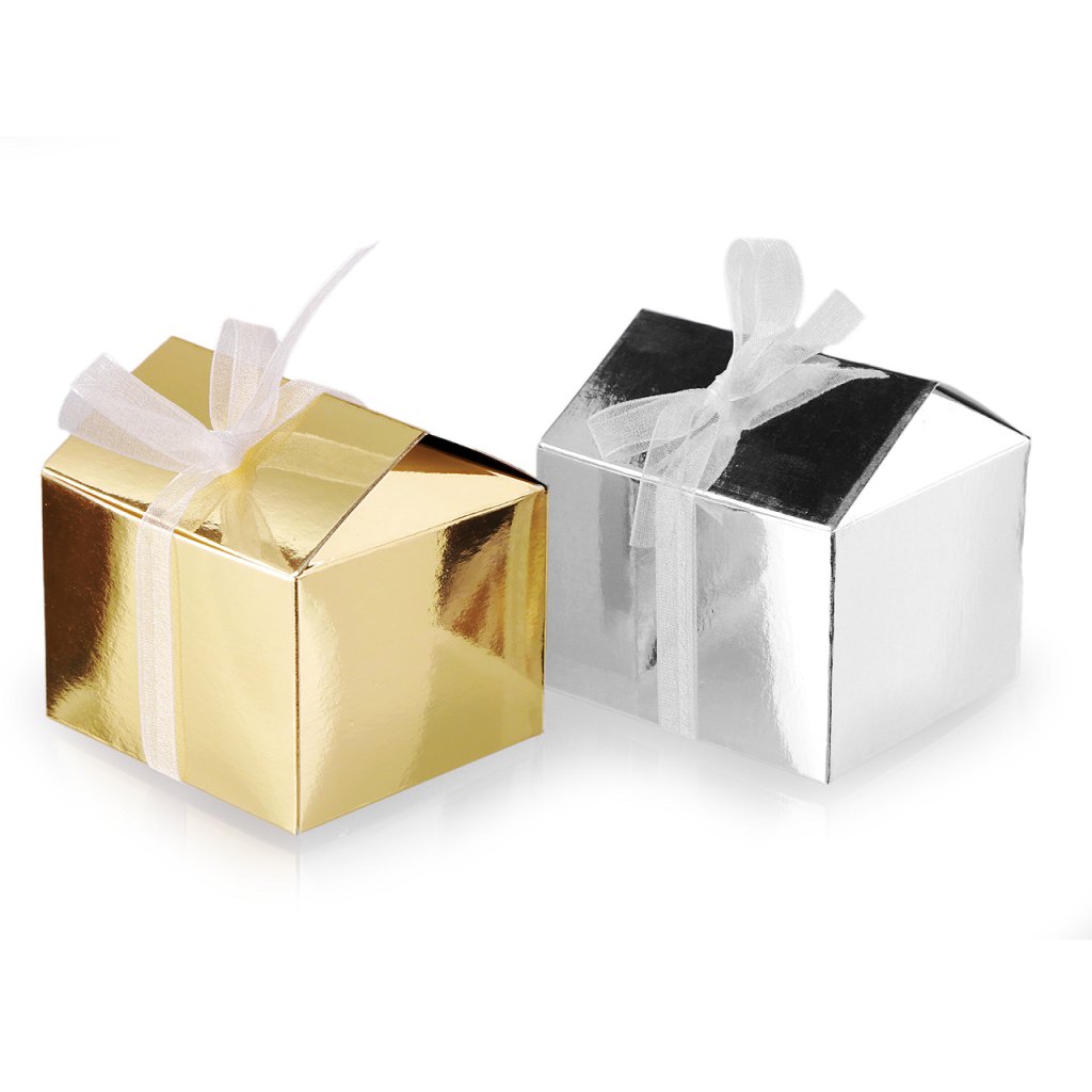 Dárková krabička domeček s lesklým metalickým povrchem potěší každého obdarovaného. Po složení ji můžete ovázat monofilovou stuhou, která je součástí balení. Krabičku můžete použít na malé dárky, jako je kosmetika, bižuterie, svíčka, balené pralinky apod). Oceníte ji i na přípravu adventního kalendáře.