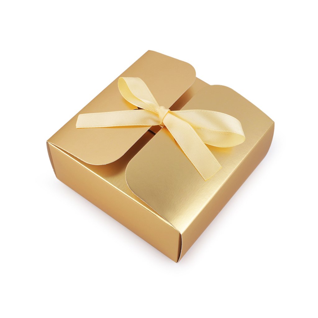 Dárková krabička s poutavým metalickým povrchem potěší každého obdarovaného. Po rozvázání stuhy na něj vykouknou 2 srdíčka, která slouží jako zavazovací otvory. Krabičku můžete použít na malé dárky, je k ní přiložená saténová stuha na zavázání.