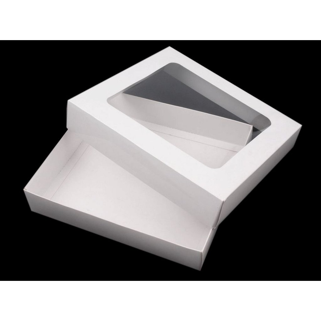 Papírová krabice má výřez ve víku z průhledné fólie. Využijete ji na balení dárků, šátků, triček, uložení menších vánočních dekorací apod. Můžete si ji i dozdobit podle svého vkusu.