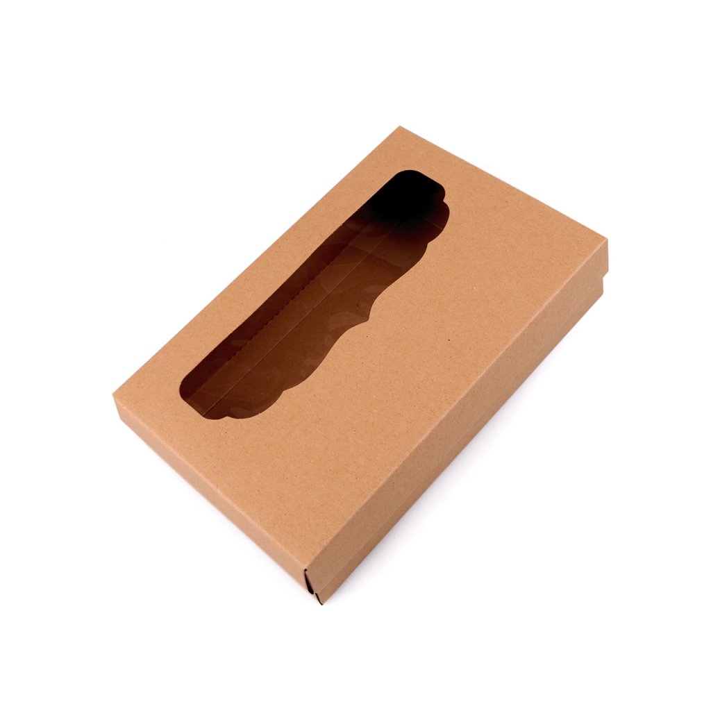 Papírová krabice má ozdobný výřez ve víku z průhledné fólie. Využijete ji na balení dárků, šátků, rukavic apod. Můžete si ji i dozdobit podle svého vkusu.