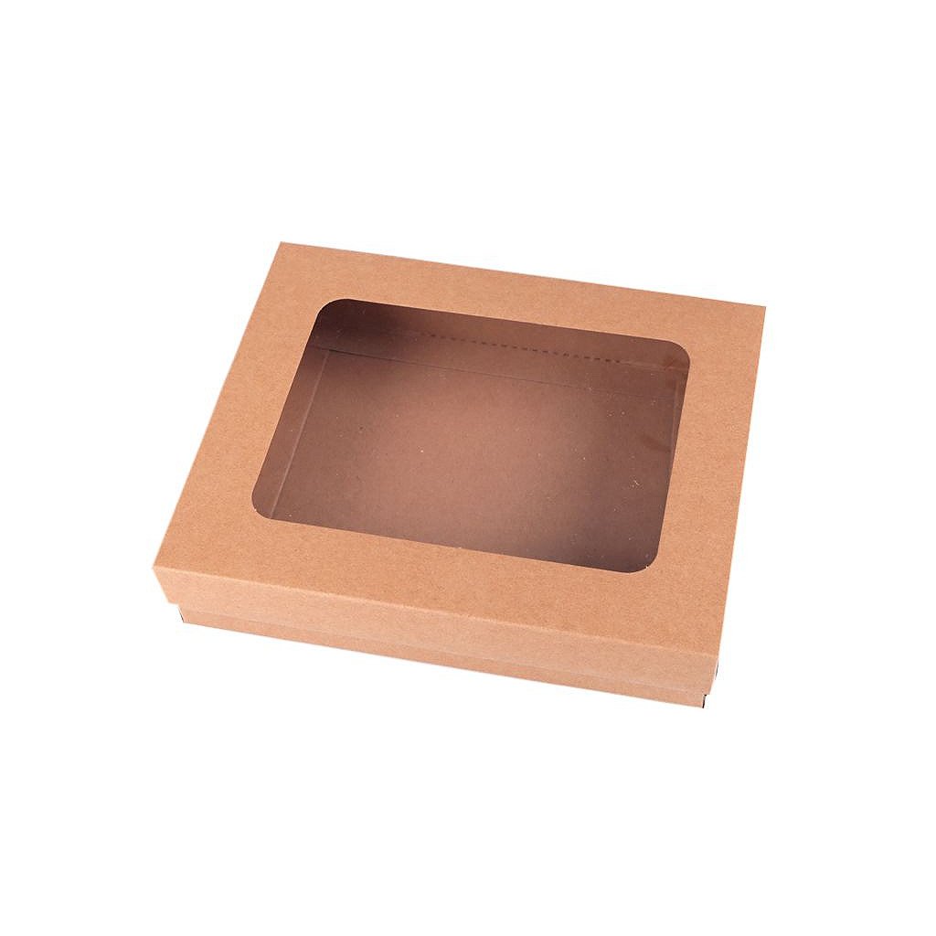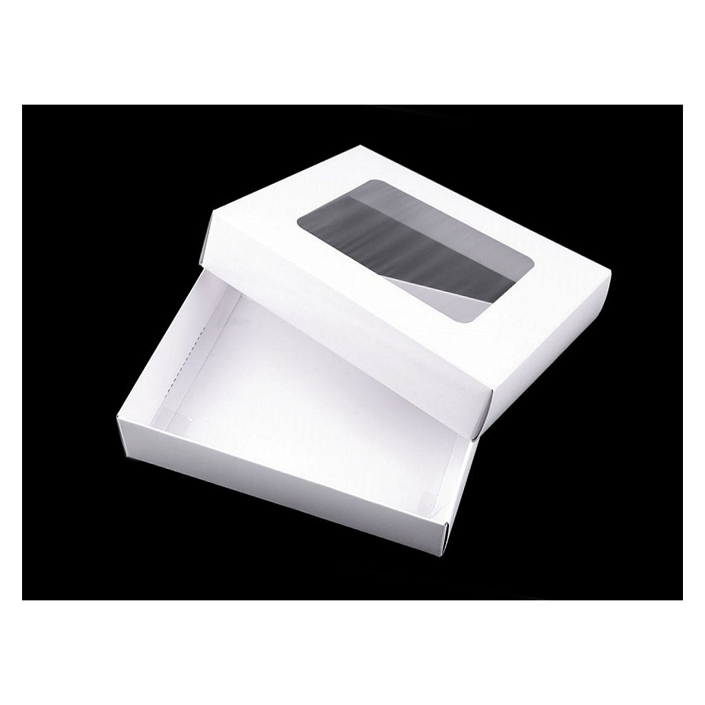 Papírová krabice má výřez ve víku z průhledné fólie. Využijete ji na balení dárků, šátků, uložení menších vánočních dekorací apod. Můžete si ji i dozdobit podle svého vkusu.