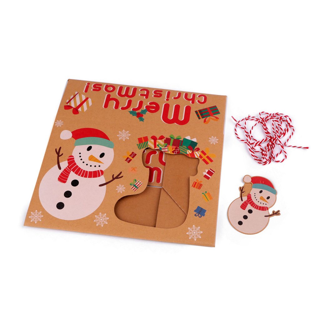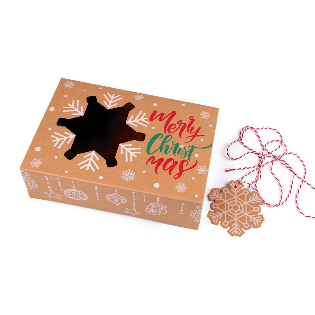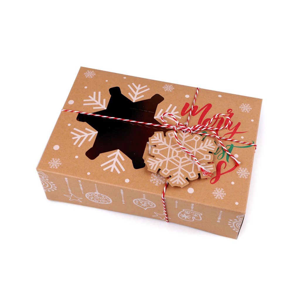 Krabička s poutavým vánočním potiskem a průhledem potěší děti i dospělé. Je ideální na zabalení vánočního dárku nebo ji můžete naplnit dobrotami na Mikuláše. Víko má odklápěcí, spojené s krabičkou. Průhled je z průhledné fólie. Součástí balení je bavlněný provázek na ozdobné ovázání a jmenovka s potiskem.