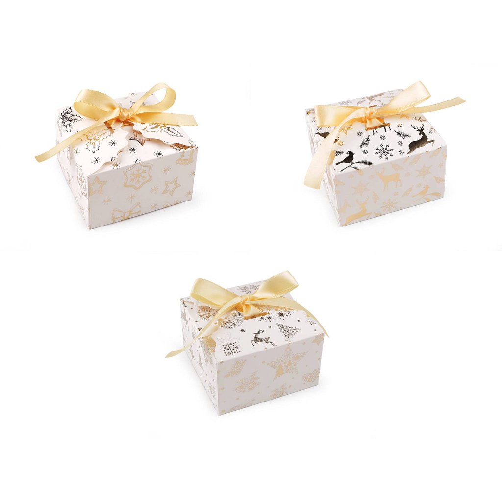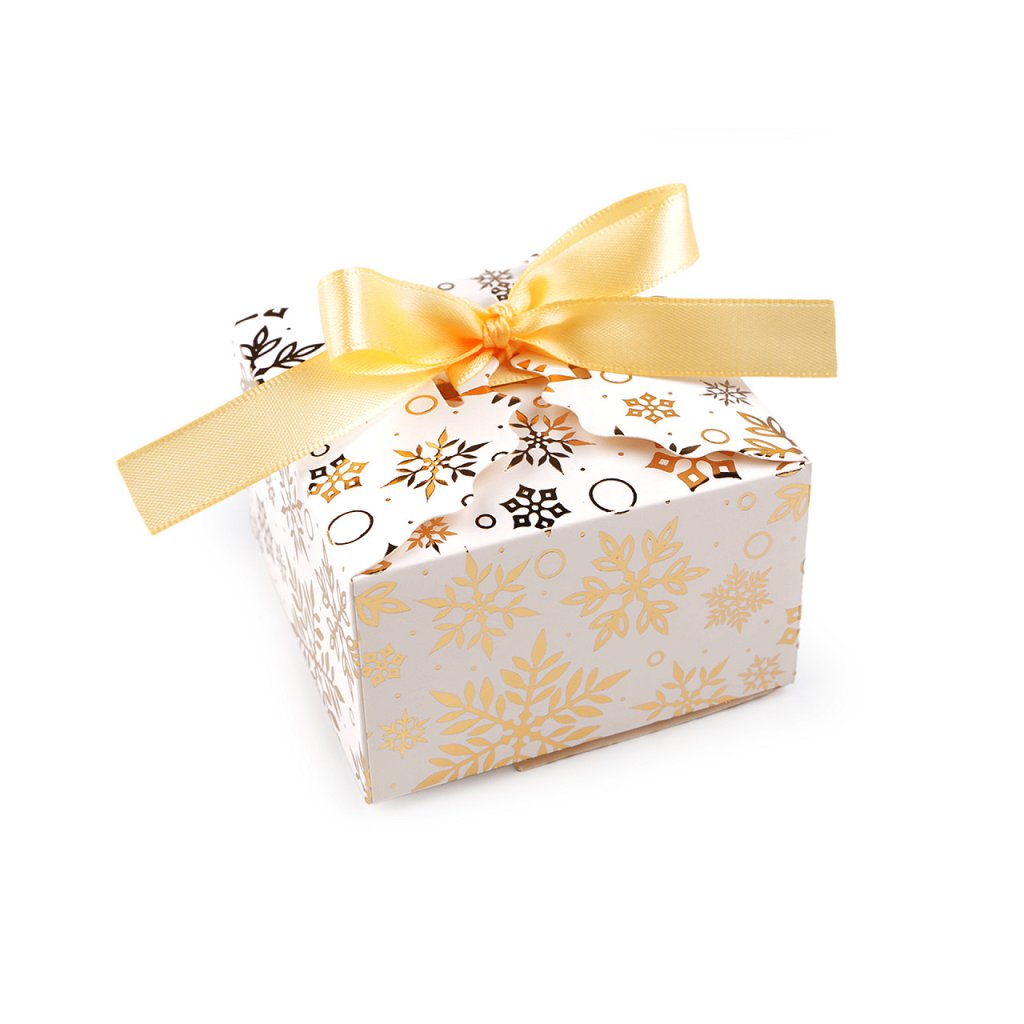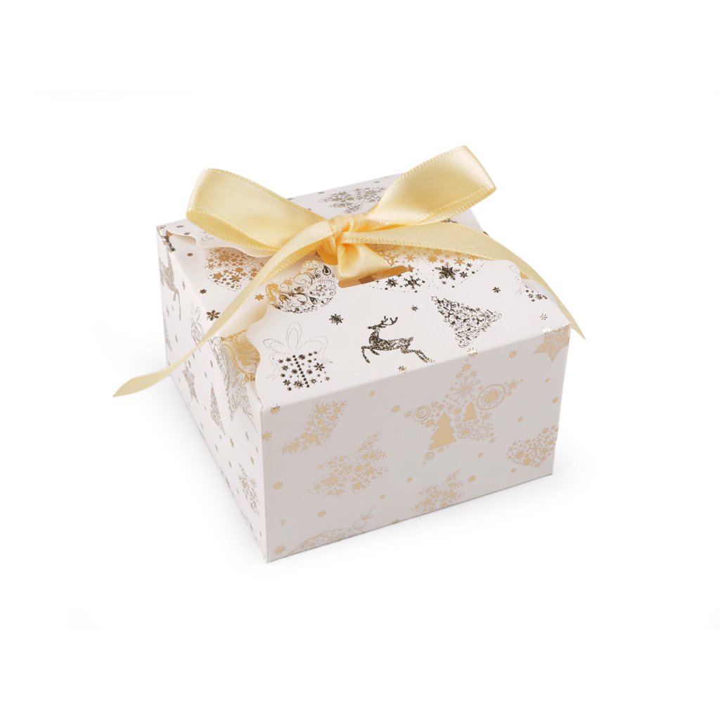 Vánoční dárková krabička se zlatým potiskem a stuhou