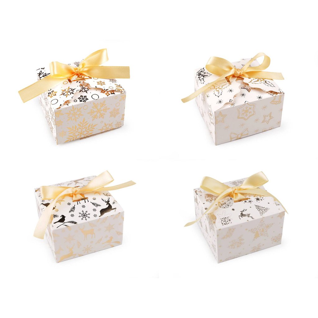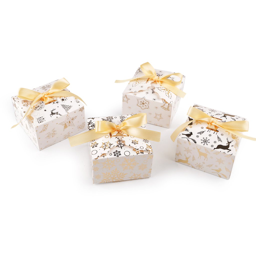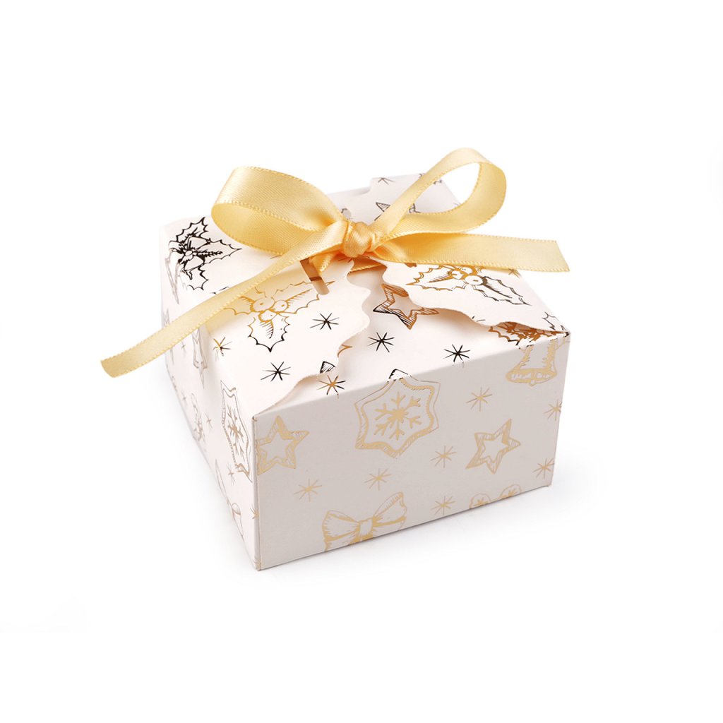 Vánoční dárková krabička se zlatým potiskem a stuhou