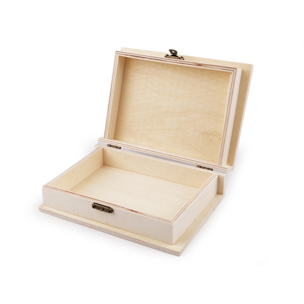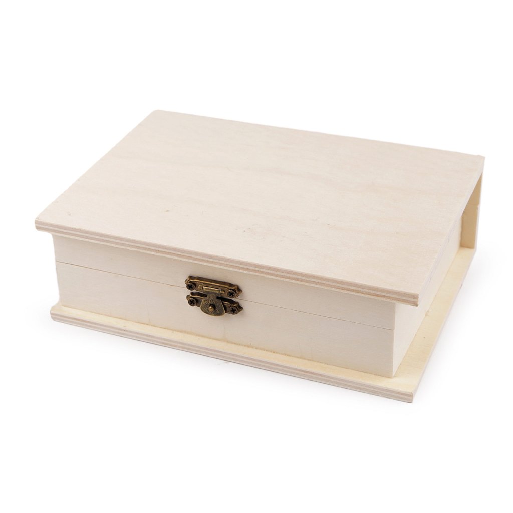 Dřevěná krabička skvěle schová vaše poklady. Má kovové zapínání a panty, víko je odklápěcí. Můžete ji použít na gumičky a sponky do vlasů, náramky i na papírky s poznámkami. Dá se vystlat polštářkem a použít na svatební prstýnky. Velkou výhodou je, že si krabičku můžete dozdobit dle svého vkusu.