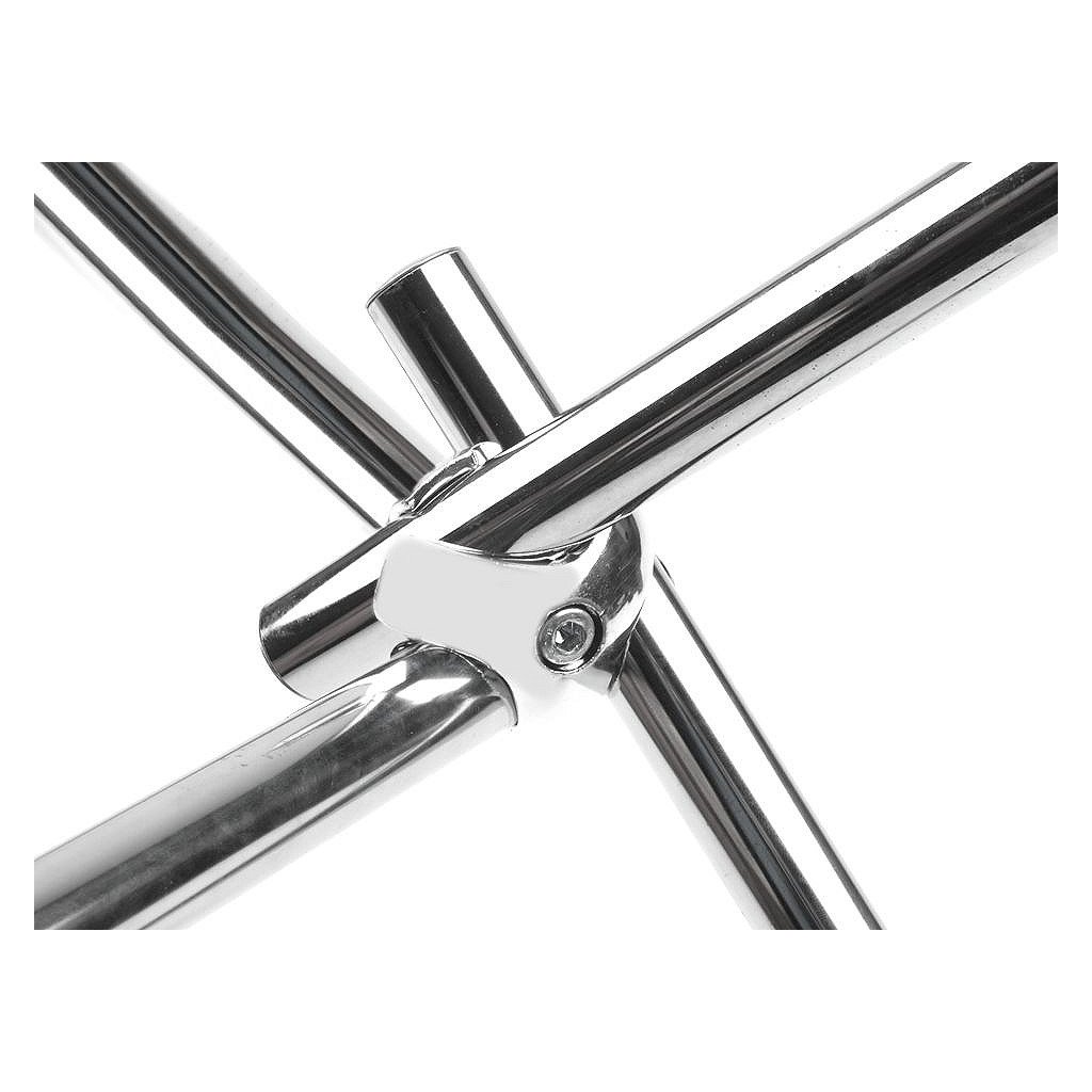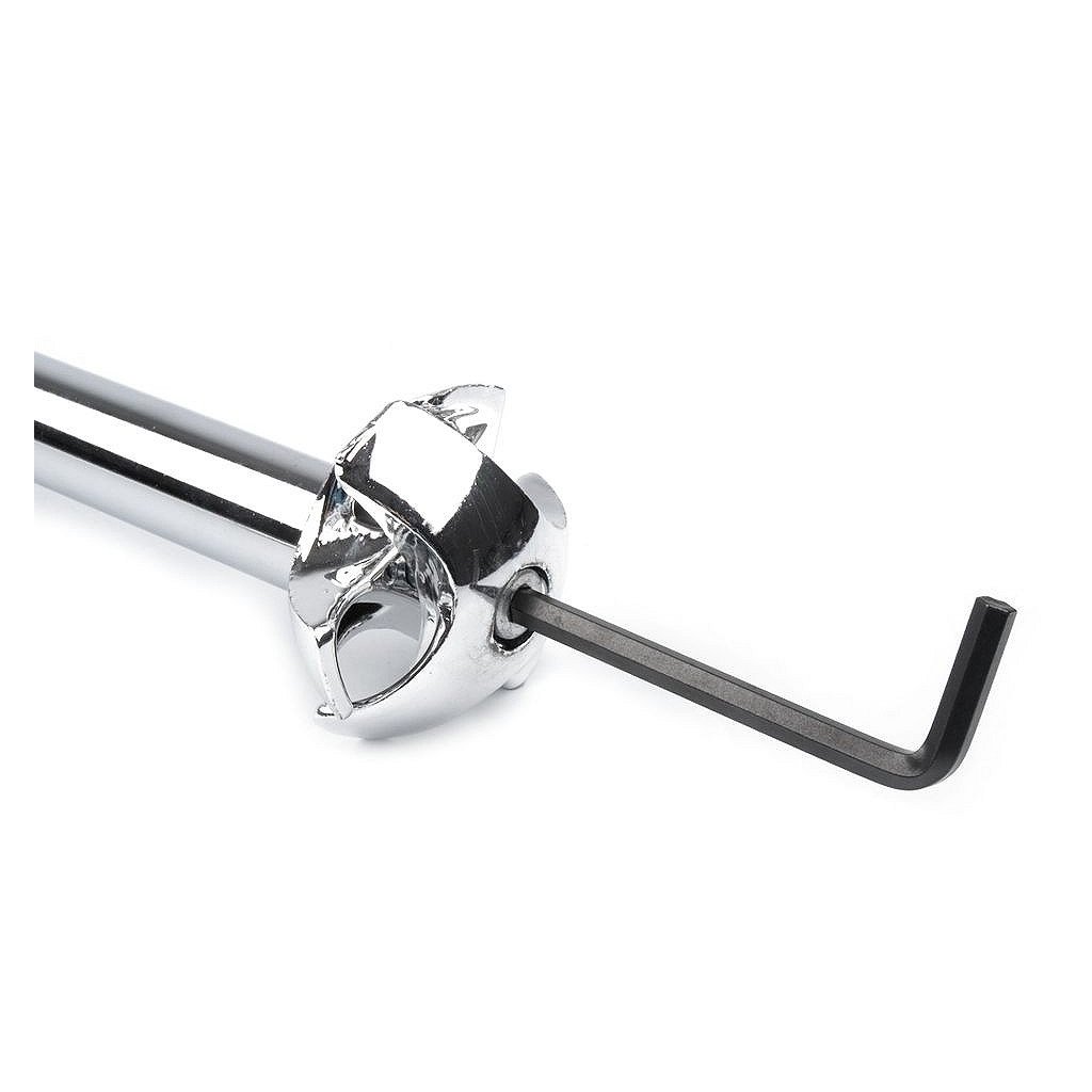 Stojan složíte tak, že si pomocí inbusového klíče vel. 6 povolíte šroub. Vysuňte kulatou část stojanu zhruba do délky 5,5 cm. Poté nasuňte kovové nohy. Viz foto.