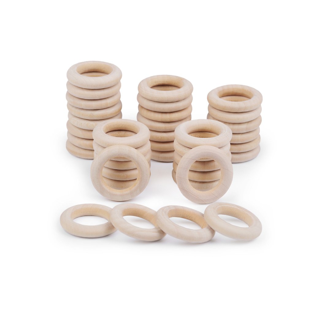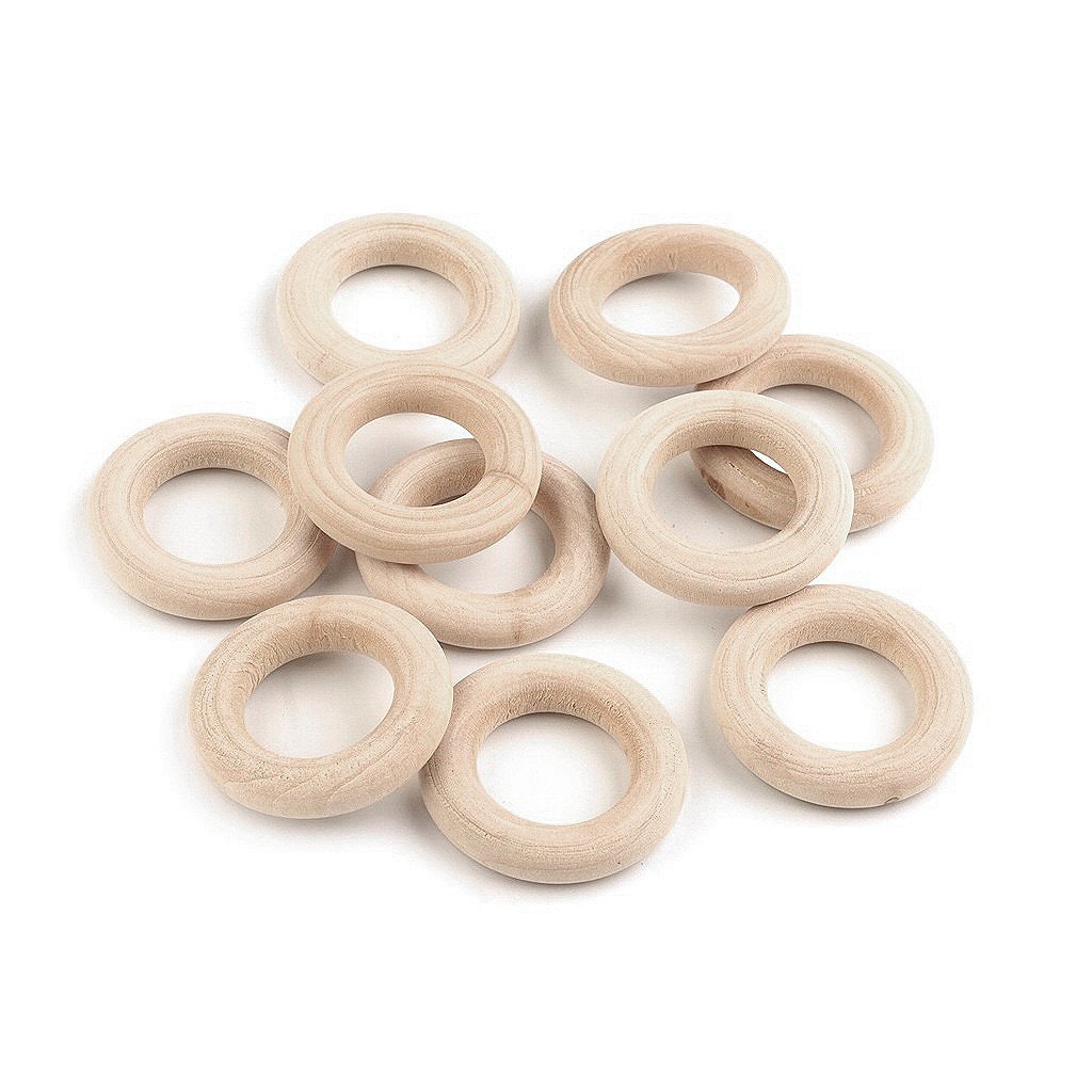 Dřevěné kroužky využijete k uchycení záclony nebo závěsu. Jsou vhodné také na výrobu lapačů snů, náhrdelníků apod. Kroužky jsou nelakované, tudíž na ně můžete bez potíží malovat.