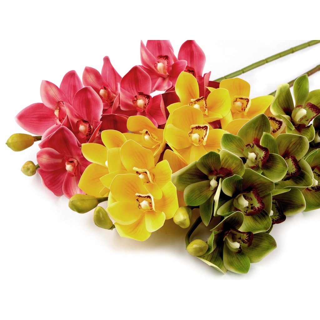 Exotická orchidej je svým zpracováním nerozeznatelná od živé. Díky délce vynikne ve váze i ve velkém květináči. Na mohutném stonku jsou působivě zabarvené velké květy. Orchidej se stane dominantou každého interiéru.